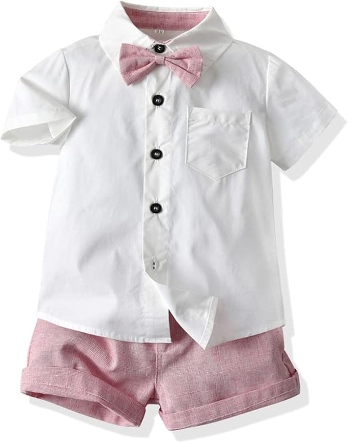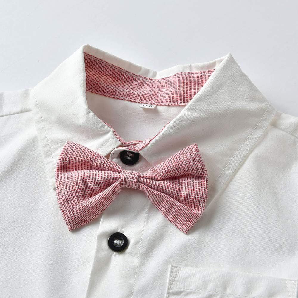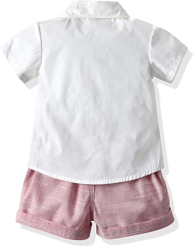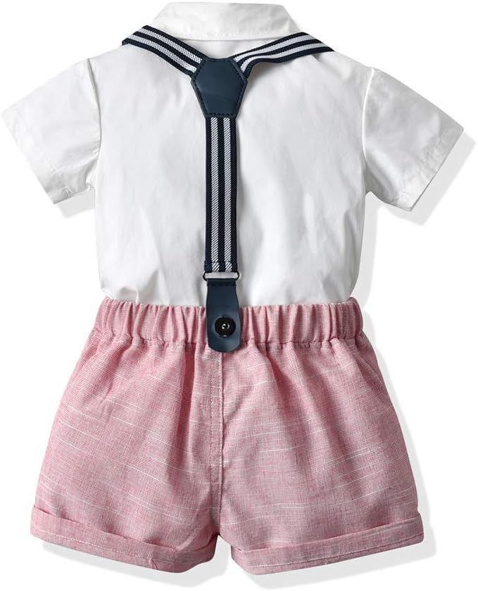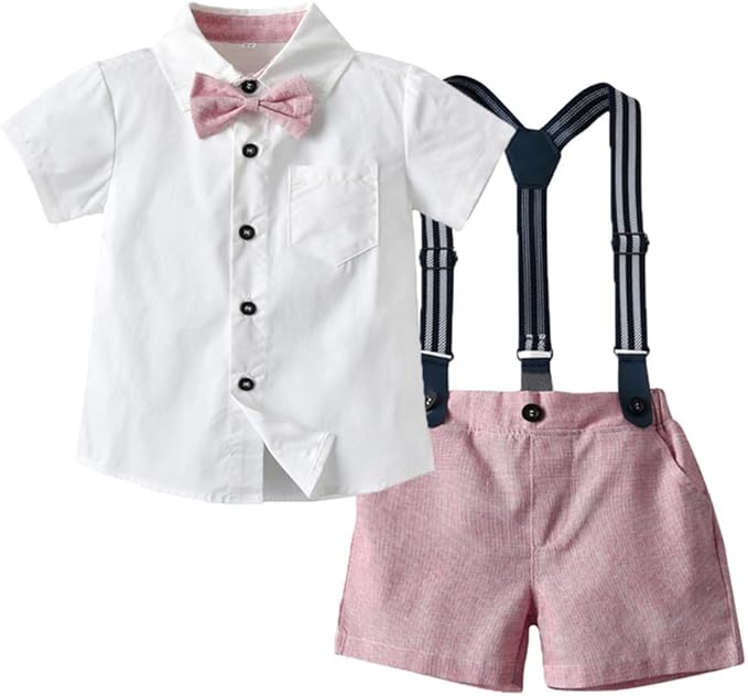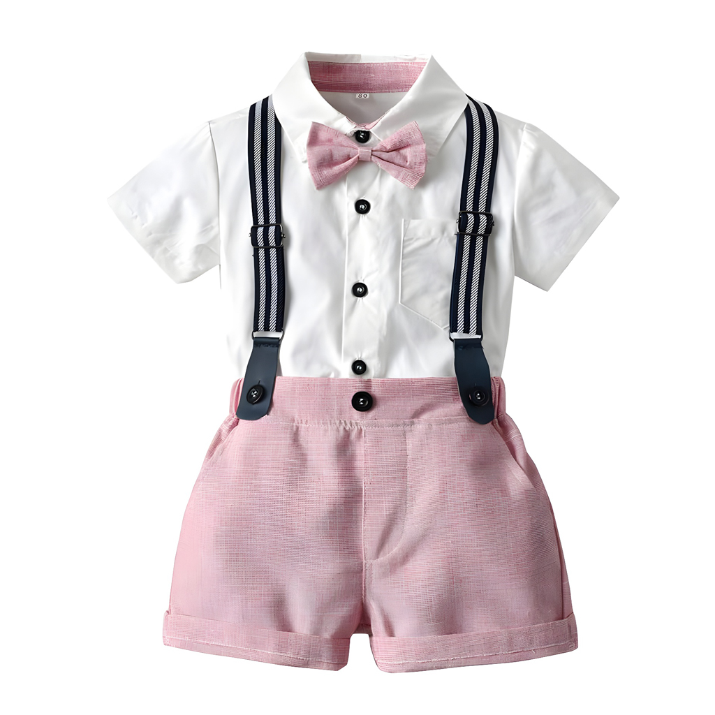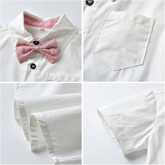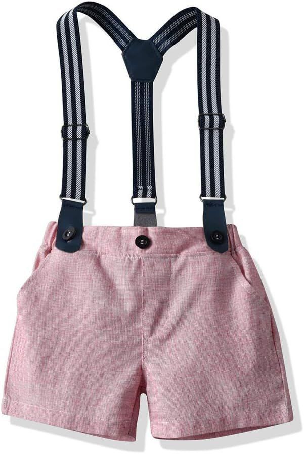 Mens Boys Short Sleeves T shirt and shorts with Braces and bow Tie