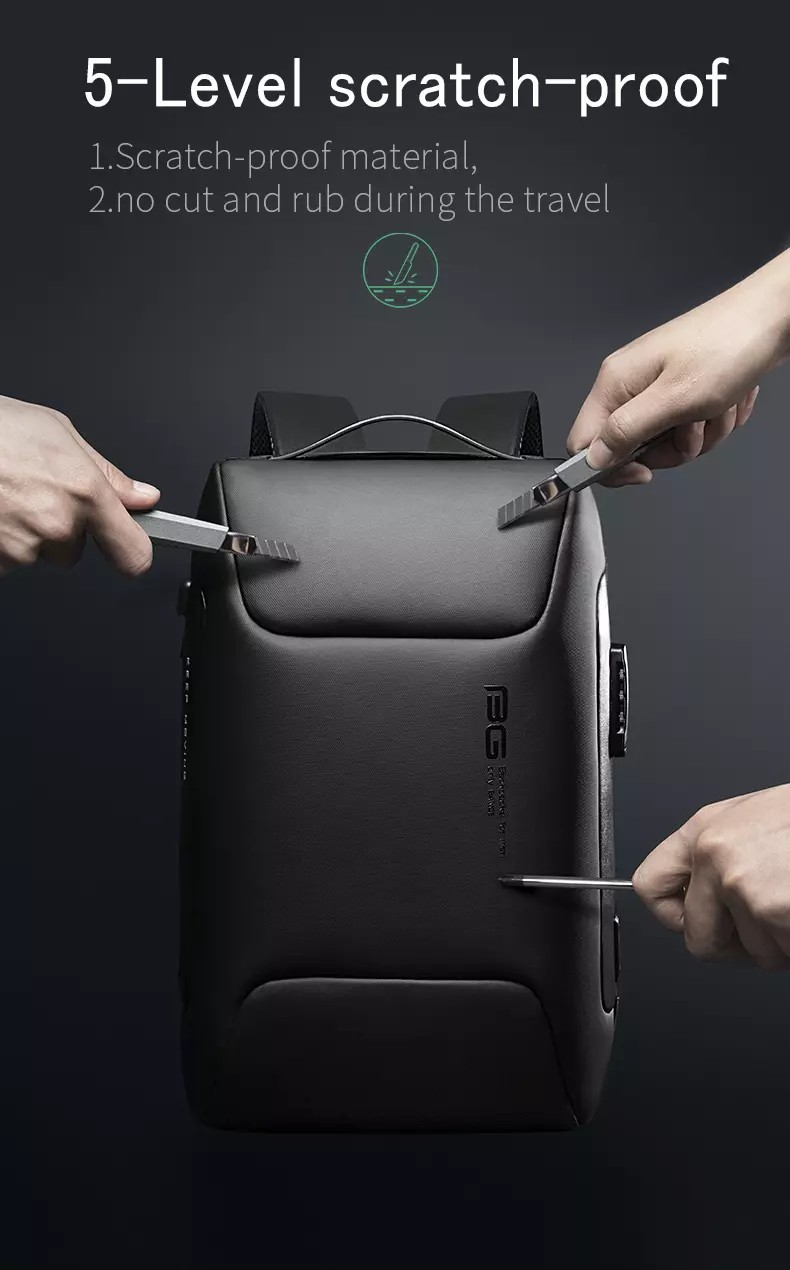شما می توانید ازکوله پشتی مسافرتی ضد آب دارای پورت USB3.0 بنج مدل BG-7216 علاوه بر سفرهایتان، در انجام کارهای روزمره و شلوغی های شهر مثل مترو و باشگاههای ورزشی با خیال راحت استفاده نمایید. بنج در طراحی این کوله از قفل ضد سرقت استفاده کرده است.