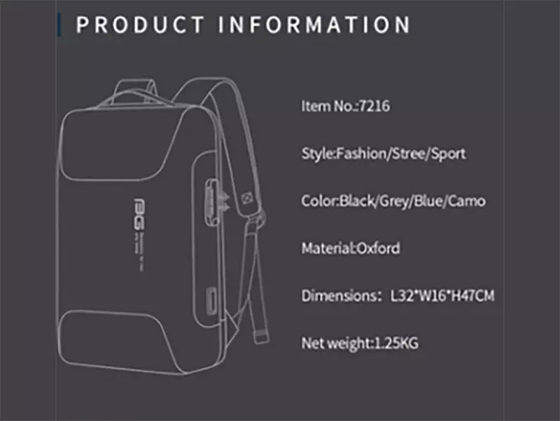 همچنین پارچه آکسفورد ضد آب می باشد و شما با خیال راحت می توانید آن را در هر نوع شرایط آب و هوایی استفاده نمایید. BANGE کوله پشتی BG-7216 را ضد ضربه طراحی کرده برای اینکه وسایل داخل کوله آسیبی نبیند.