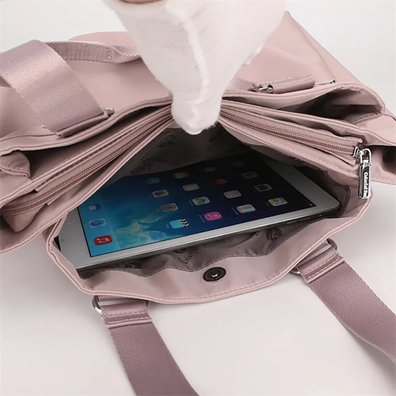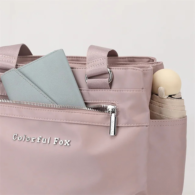 کیف زنانه برند کالرفول فاکس مدل 2328 دارای رنگ های جذاب با جنس پلی استر ضد آب و قابل شستشو میباشد که علاوه بر زیبایی ، راحتی و دوام بالا را برای شما به ارمغان می آورد. در جلوی کیف یک جیب زیپی و در کناره های آن یک جیب ساده قرار دارد . درون محفظه اصلی یک جیب زیپ دار موجود است . در کناره های محفظه اصلی در دو طرف یک محفظه دکمه مگنتی قرار دارد . این مدل همچنین دارای بند بلند میباشد که میتوانید هم آن را به صورت دوشی زنانه و هم به صورت کیف کج با بند بلند استفاده کنید.بر روی آستر داخلی برند و لوگو کالرفول فاکس درج شده است . جنس سر زیپ ها و یراق آلات همگی فلزی میباشد که علاوه بر زیبایی به استحکام محصول افزوده است.