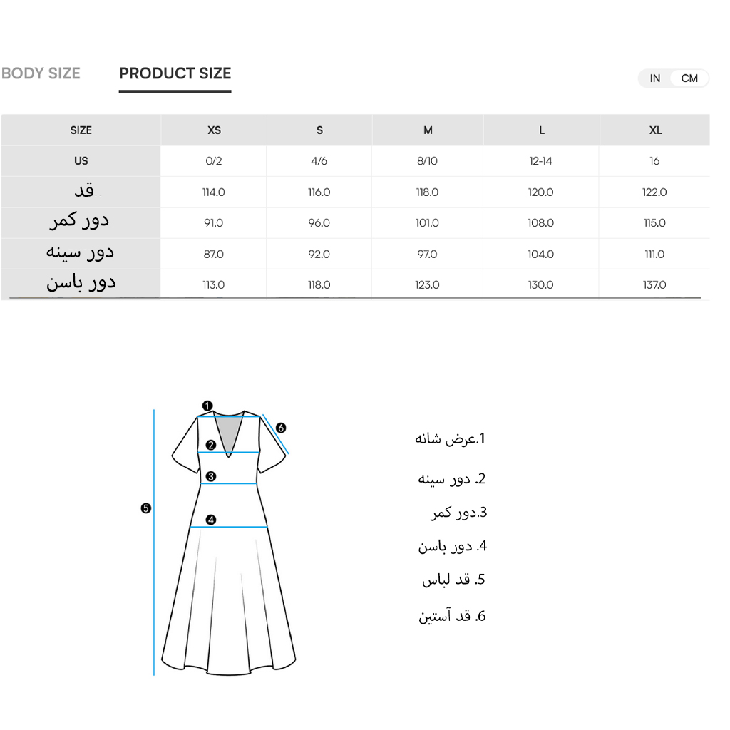 سایز را انتخاب کنید.