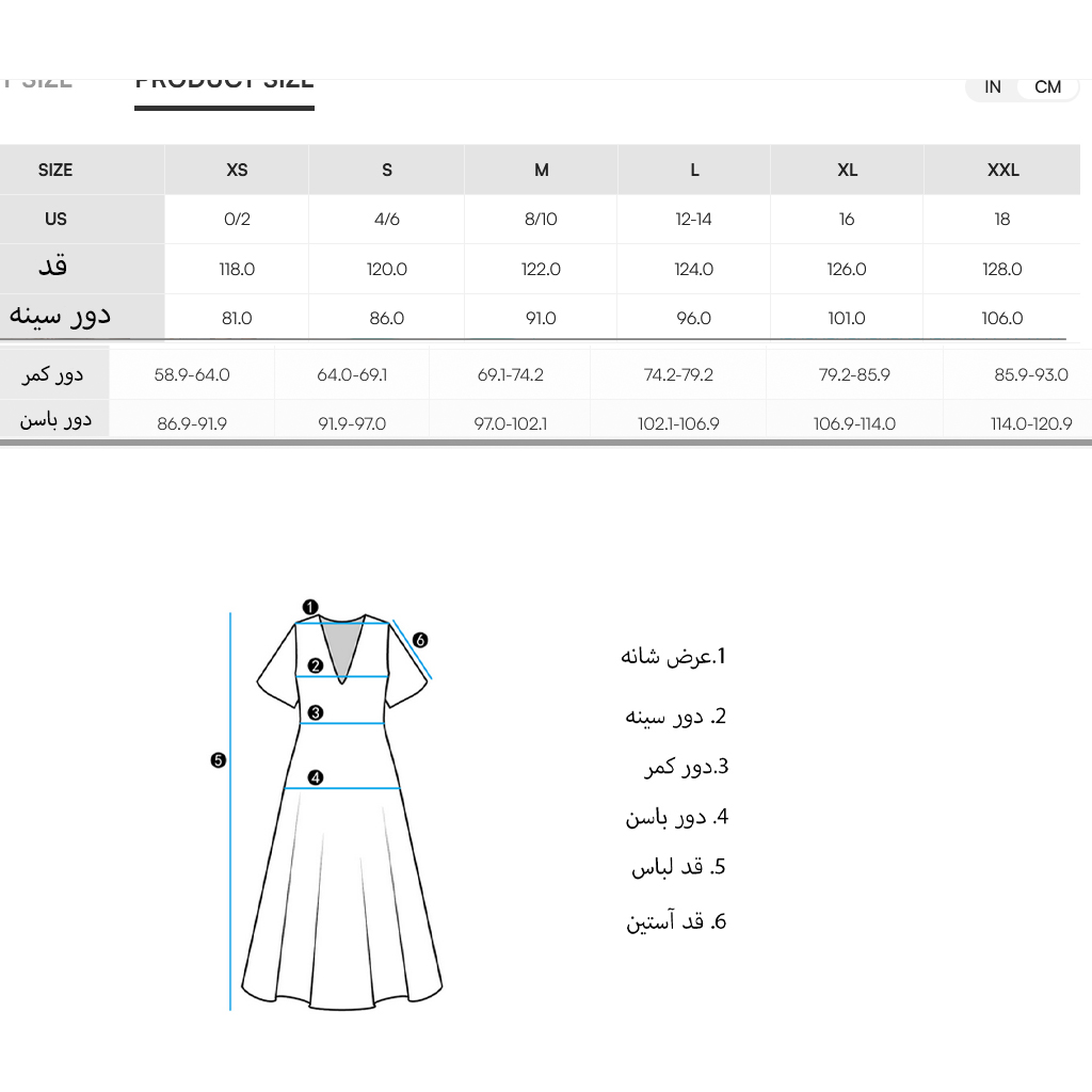 سایز را انتخاب کنید.