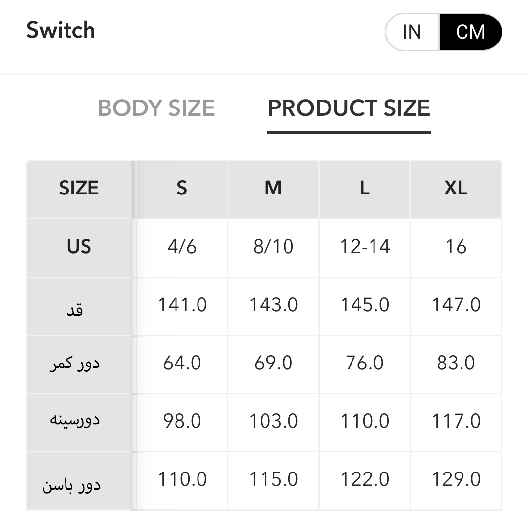 راهنمای سایز