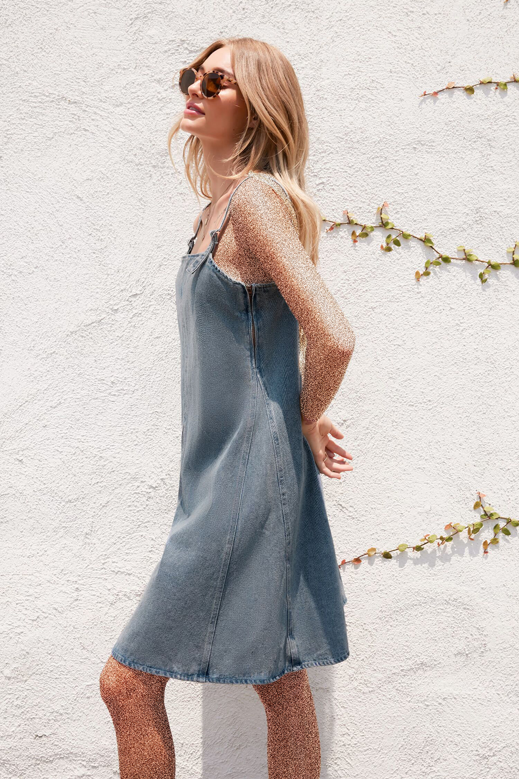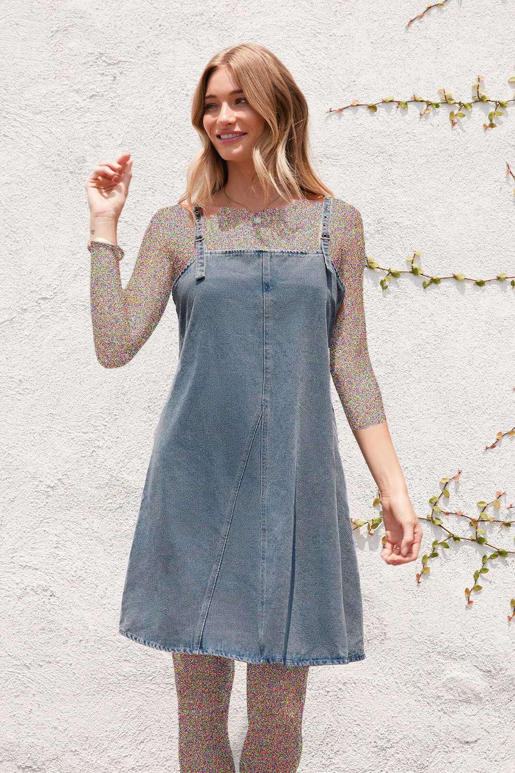با پیراهن کوتاه یقه مربعی بدون آستین جین، استایلی غیررسمی و جذاب داشته باشید. یقه مربعی و جین کلاسیک، این لباس را به لباسی محبوب و راحت تبدیل کرده که برای هر سلیقهای مناسب است