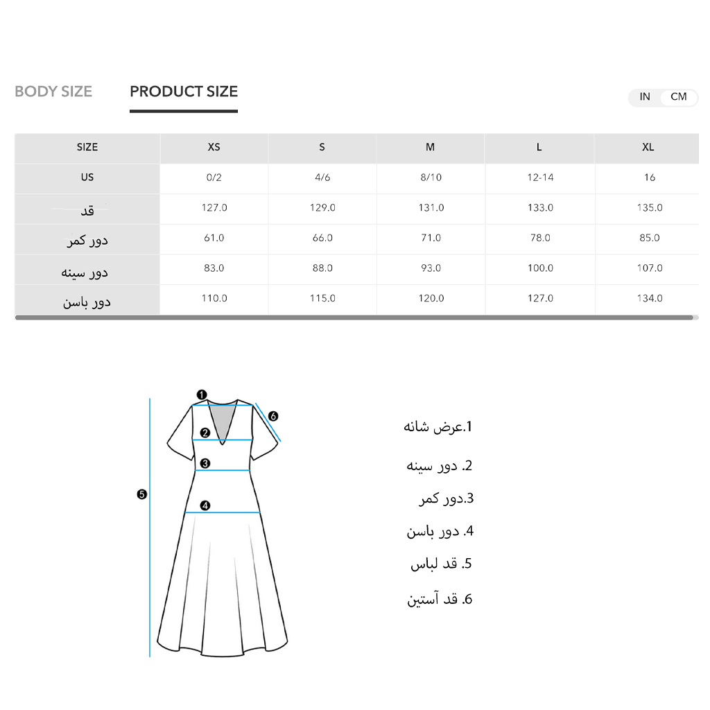 سایز را انتخاب کنید.