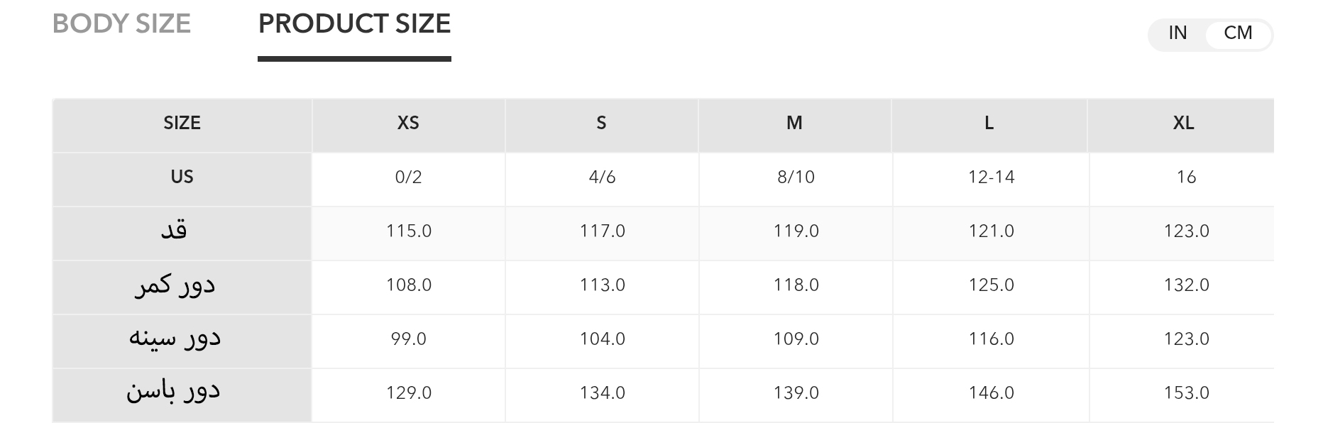 راهنمای سایز