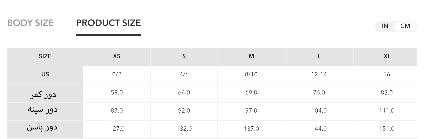 راهنمای سایز