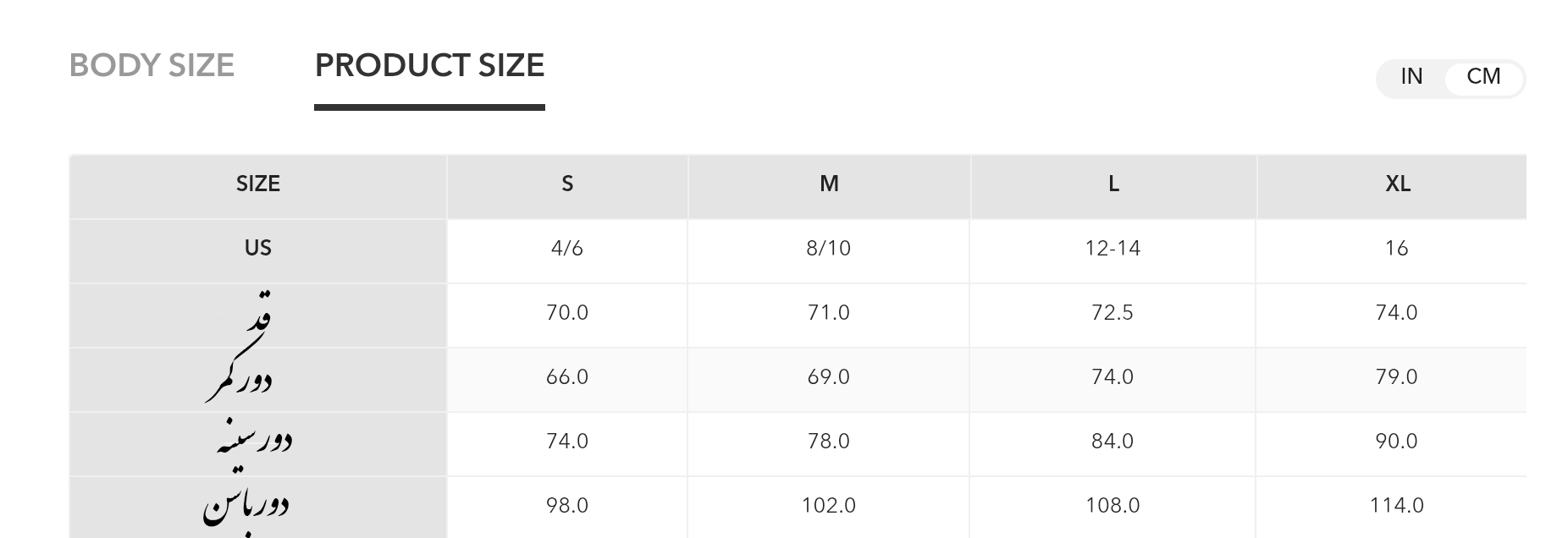 راهنمای سایز