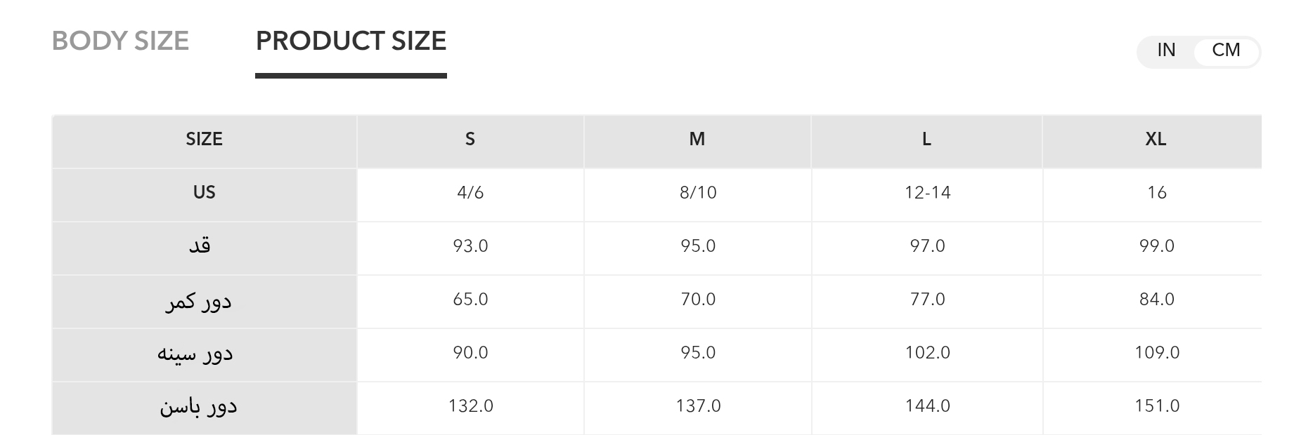 پیراهن: ۹۶٪ پلیاستر، ۴٪ اسپندکس