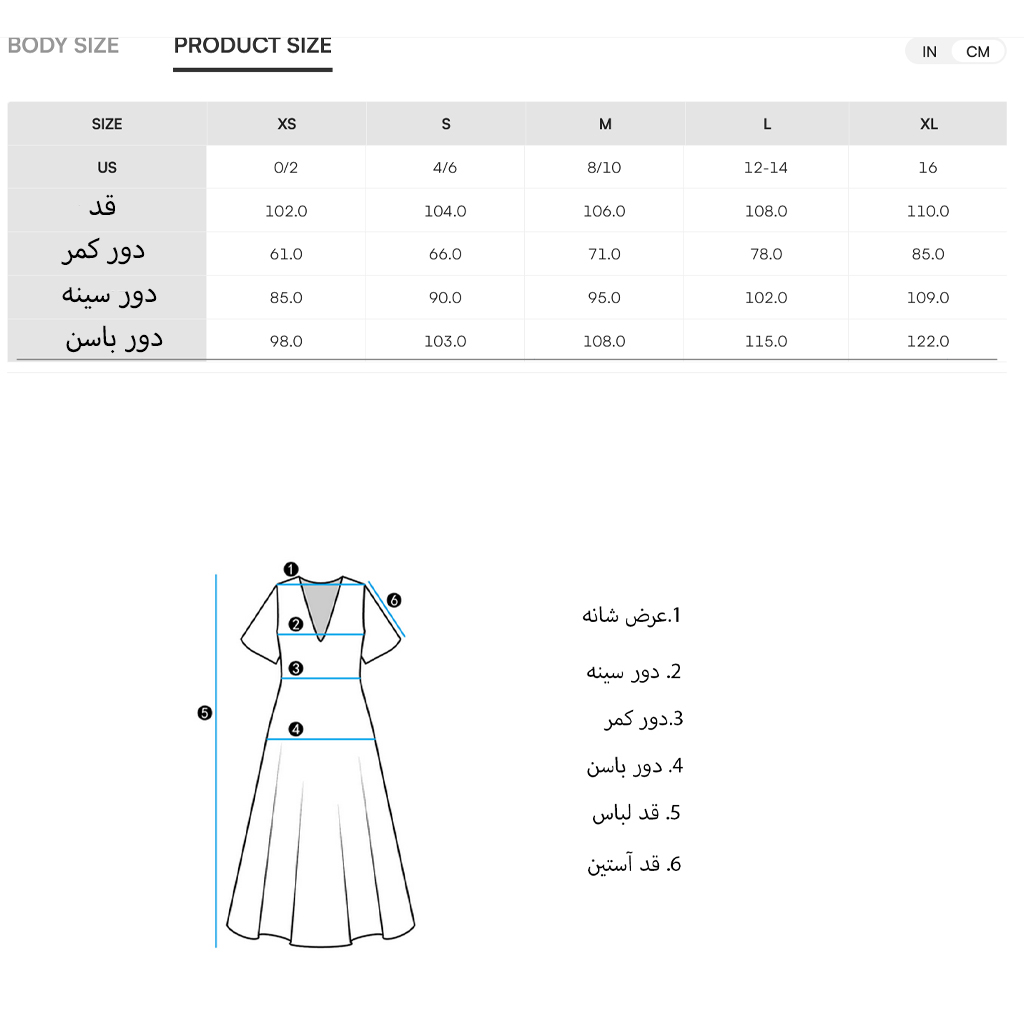 سایز را انتخاب کنید.