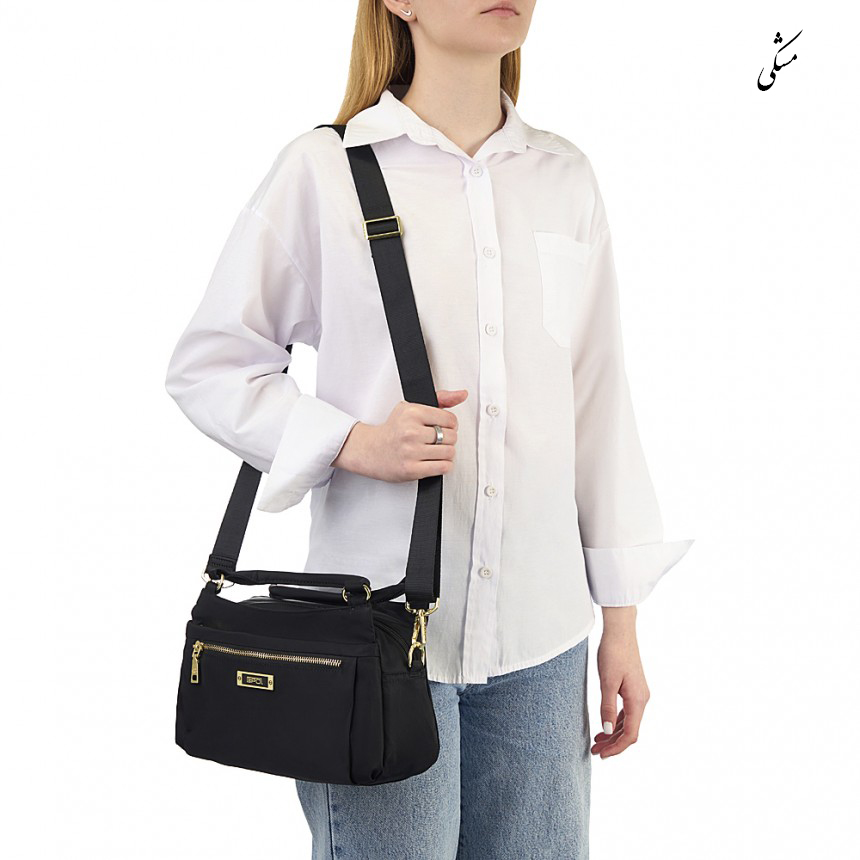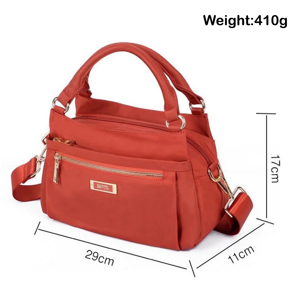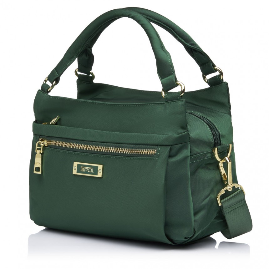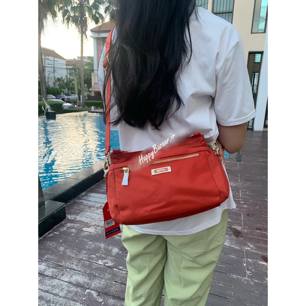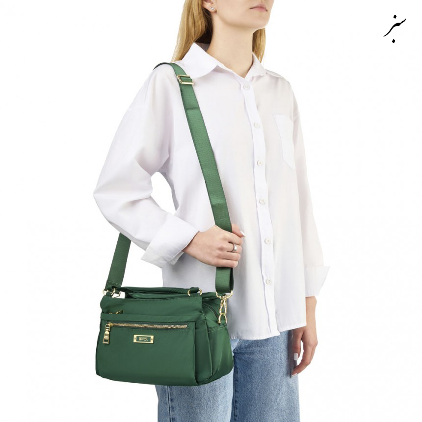 کیف زنانه برند ایپول مدل 6006-02 دارای جنس پلی استر ضد آب میباشد که در عین کوچکی محصول دارای جیب های متعدد برای استفاده کاربردی است . در جلوی کیف دو جیب زیپی و در پشت کیف یک جیب زیپی قرار دارد.در محفظه اصلی در یک سمت دو جیب ساده و در سمت دیگر یک جیب زیپی موجود است . رنگ زیپ ها و یراق آلات طلایی با کیفیت رنگ ثابت میباشد که به زیبایی محصول افزوده است . این مدل دارای بند بلند دوشی و دسته دار است که میتوانید هم به صورت دوشی هم به صورت دستی استفاده نمایید. بر روی آستر داخلی و سر زیپ ها برند ایپول درج شده است که نشان دهنده اورجینال بودن کالا میباشد