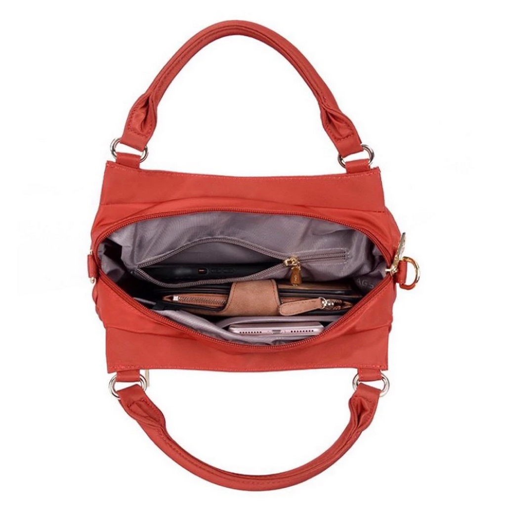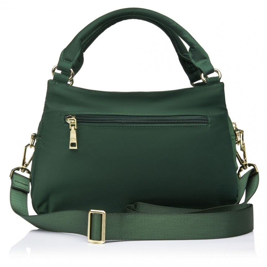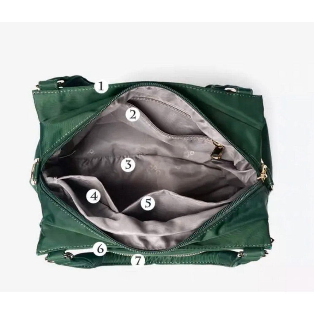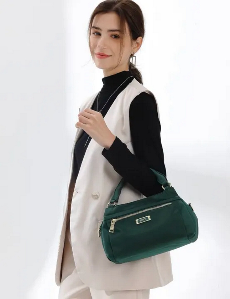 کیف زنانه برند ایپول مدل 6006-02 دارای جنس پلی استر ضد آب میباشد که در عین کوچکی محصول دارای جیب های متعدد برای استفاده کاربردی است . در جلوی کیف دو جیب زیپی و در پشت کیف یک جیب زیپی قرار دارد.در محفظه اصلی در یک سمت دو جیب ساده و در سمت دیگر یک جیب زیپی موجود است . رنگ زیپ ها و یراق آلات طلایی با کیفیت رنگ ثابت میباشد که به زیبایی محصول افزوده است . این مدل دارای بند بلند دوشی و دسته دار است که میتوانید هم به صورت دوشی هم به صورت دستی استفاده نمایید. بر روی آستر داخلی و سر زیپ ها برند ایپول درج شده است که نشان دهنده اورجینال بودن کالا میباشد