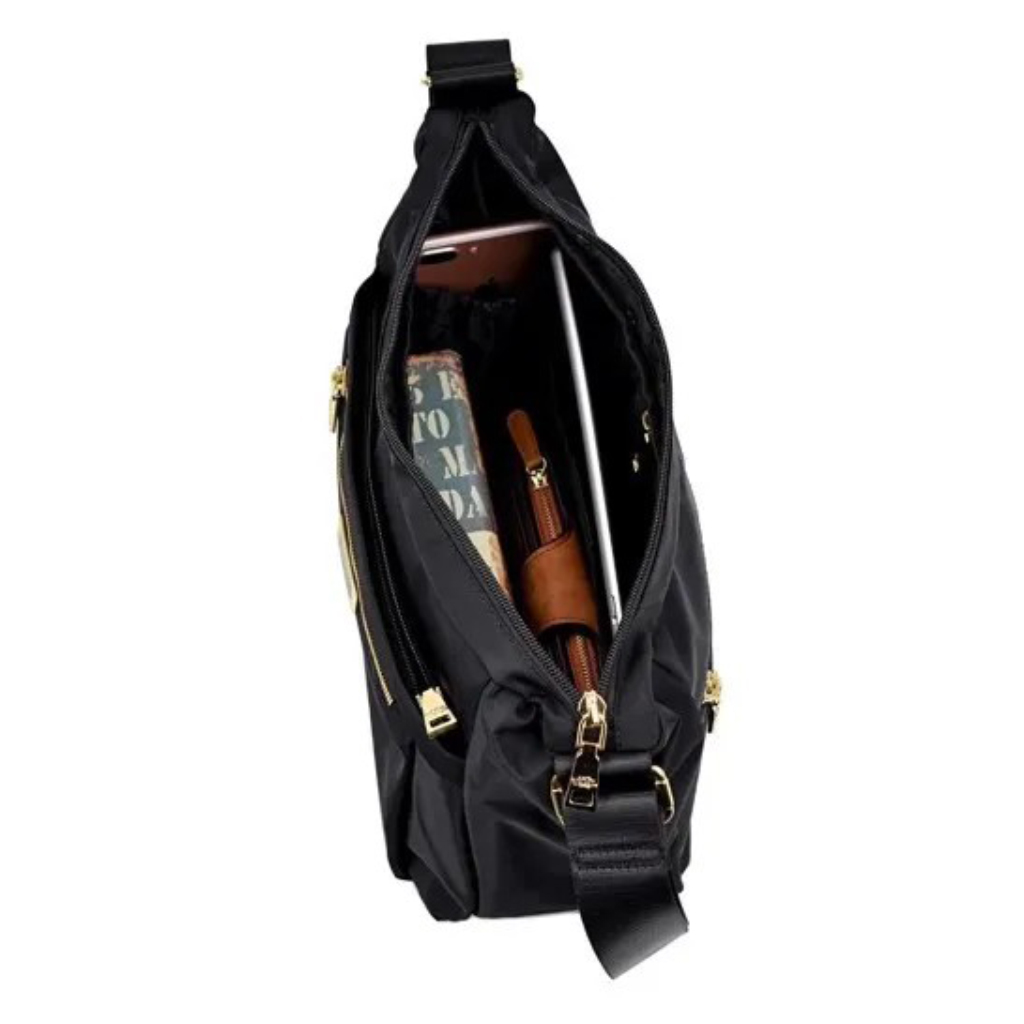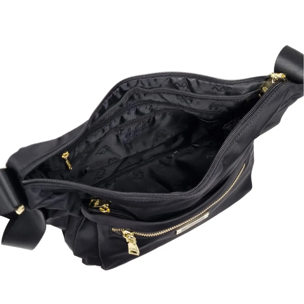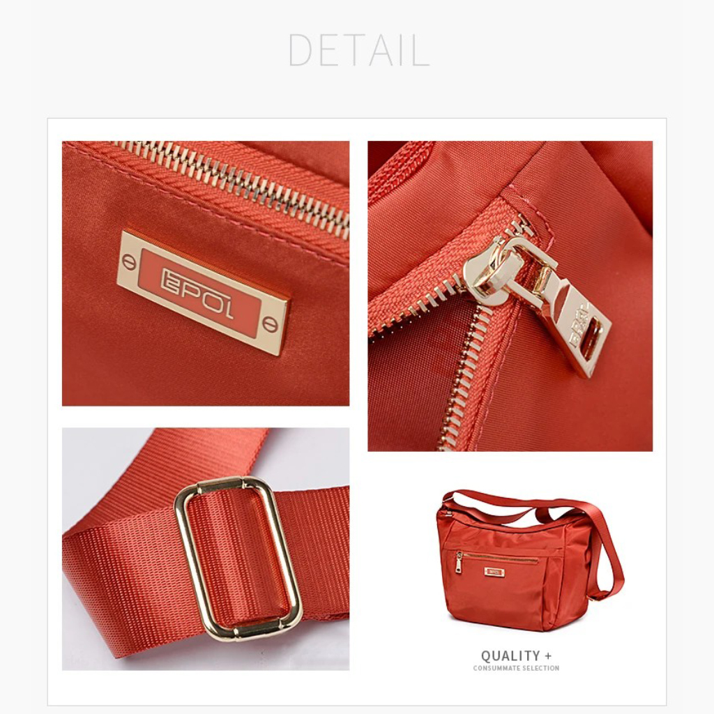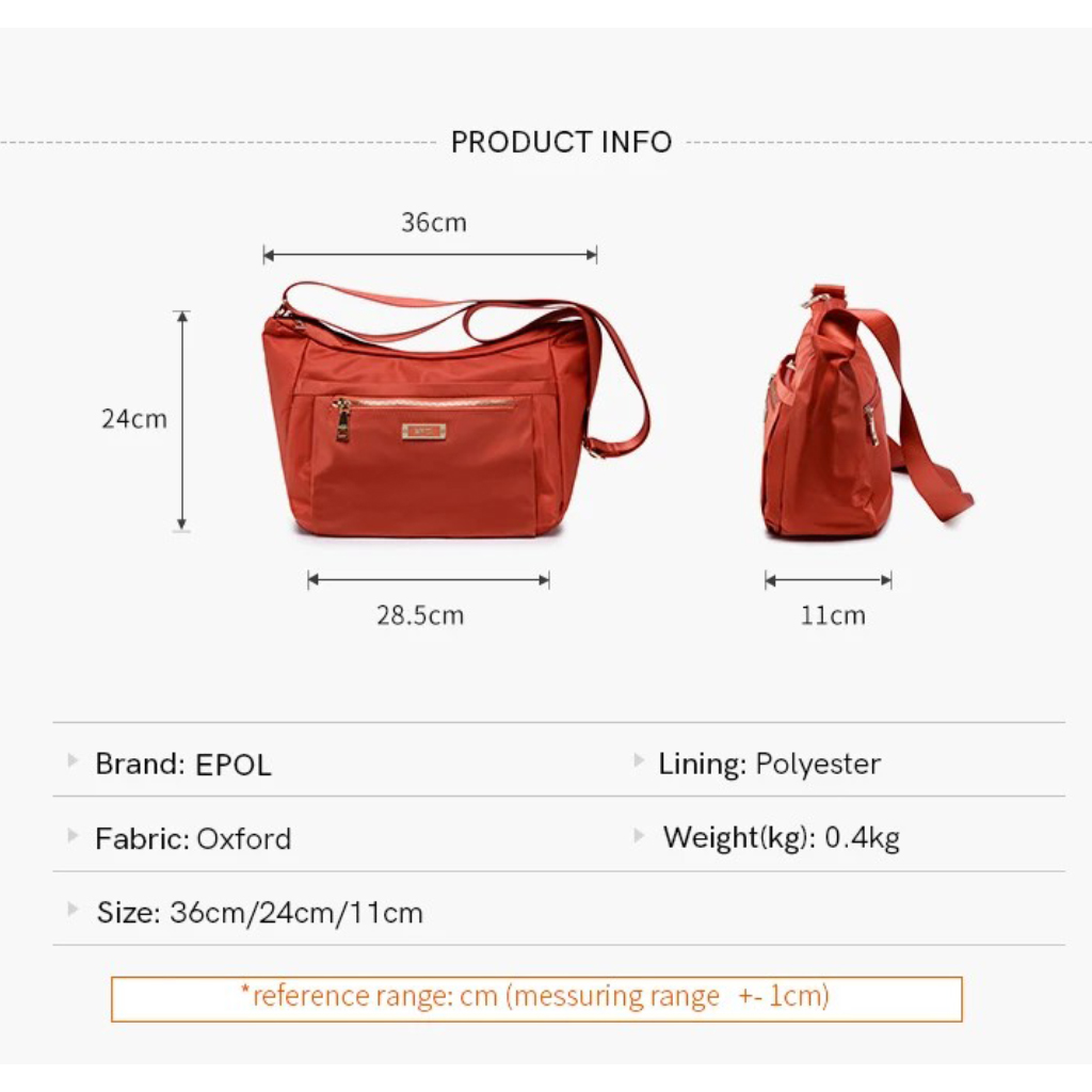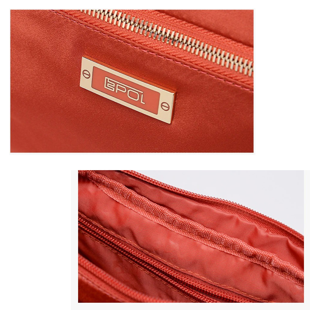 کیف زنانه ایپول مدل 6006-18دارای جنس پلی استر ضد آب میباشد که قابل شستشو است . این مدل با وزن بسیار سبک 400 گرم علاوه بر زیبایی منحصر به فردی که دارد راحتی در استفاده را برای شما به ارمغان میاورد. در محفظه اصلی کیف در یک سمت محفظه یک جیب زیپ دار یک جیب چسبی و در سمت دیگر دو جیب ساده قرار دارد و در داخل محفظه اصلی در کناره های آن نیز جیب ساده موجود است .در جلوی کیف دو جیب زیپ دار و در پشت آن نیز یک جیب زیپ دار قرار دارد . زیپ و یراق آلات محصول از جنس درجه یک با کیفیت بالا میباشد که به رنگ طلایی میباشد و به زیبایی محصول افزوده است. بر روی آستر داخلی و سر زیپ های کیف برند Epol درج شده است که نشان دهنده اورجینال بودن کالا میباشد.