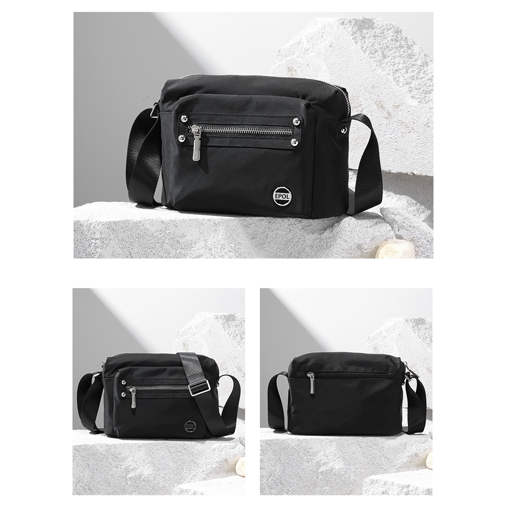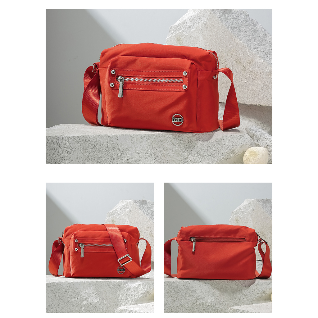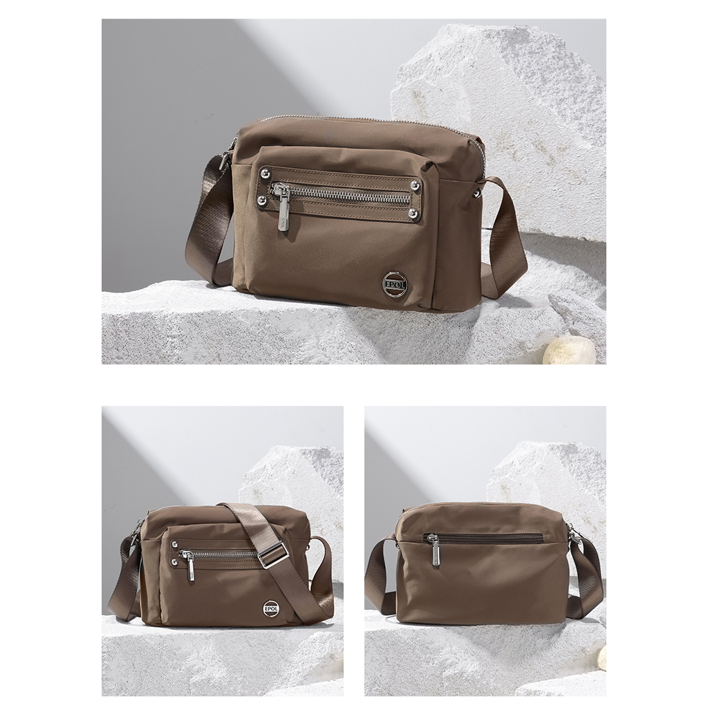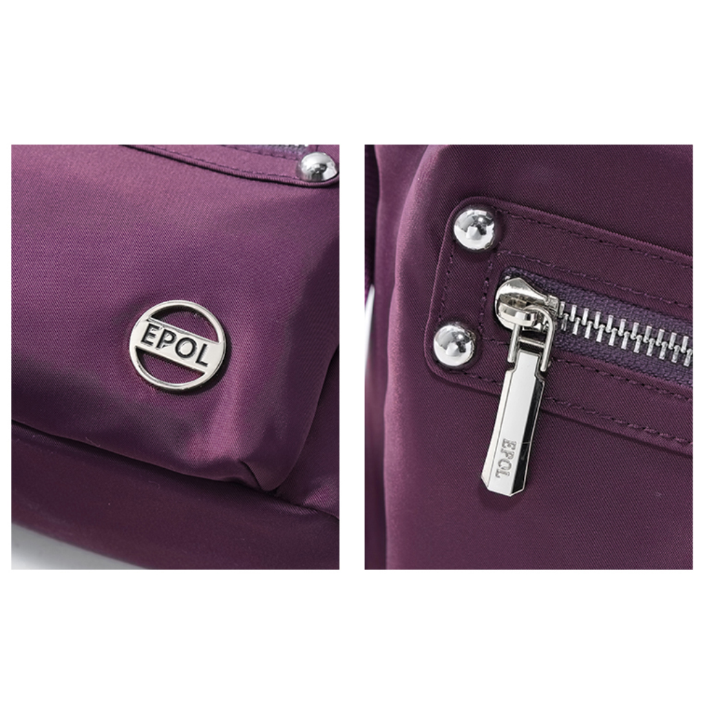 کیف برند ایپول 6088-07 دارای جنس پلی استر ضدآب میباشد که وزن بسیار سبک 230 گرم را دارد که علاوه بر راحتی و کیفیت ، زیبایی منحصر به فردی را داراست. در جلو و عقب کیف یک جیب زیپ دار قرار دارد که فضای مناسبی برای قراردادن لوازم خرده ریز میباشد.در محفظه اصلی کیف در یک طرف محفظه اصلی یک جیب زیپ دار و در طرف دیگر یک جیب ساده قرار دارد. بر روی زیپ و آستر کیف برند Epol درج شده است که نشان دهنده اورجینال بودن کالا میباشد.