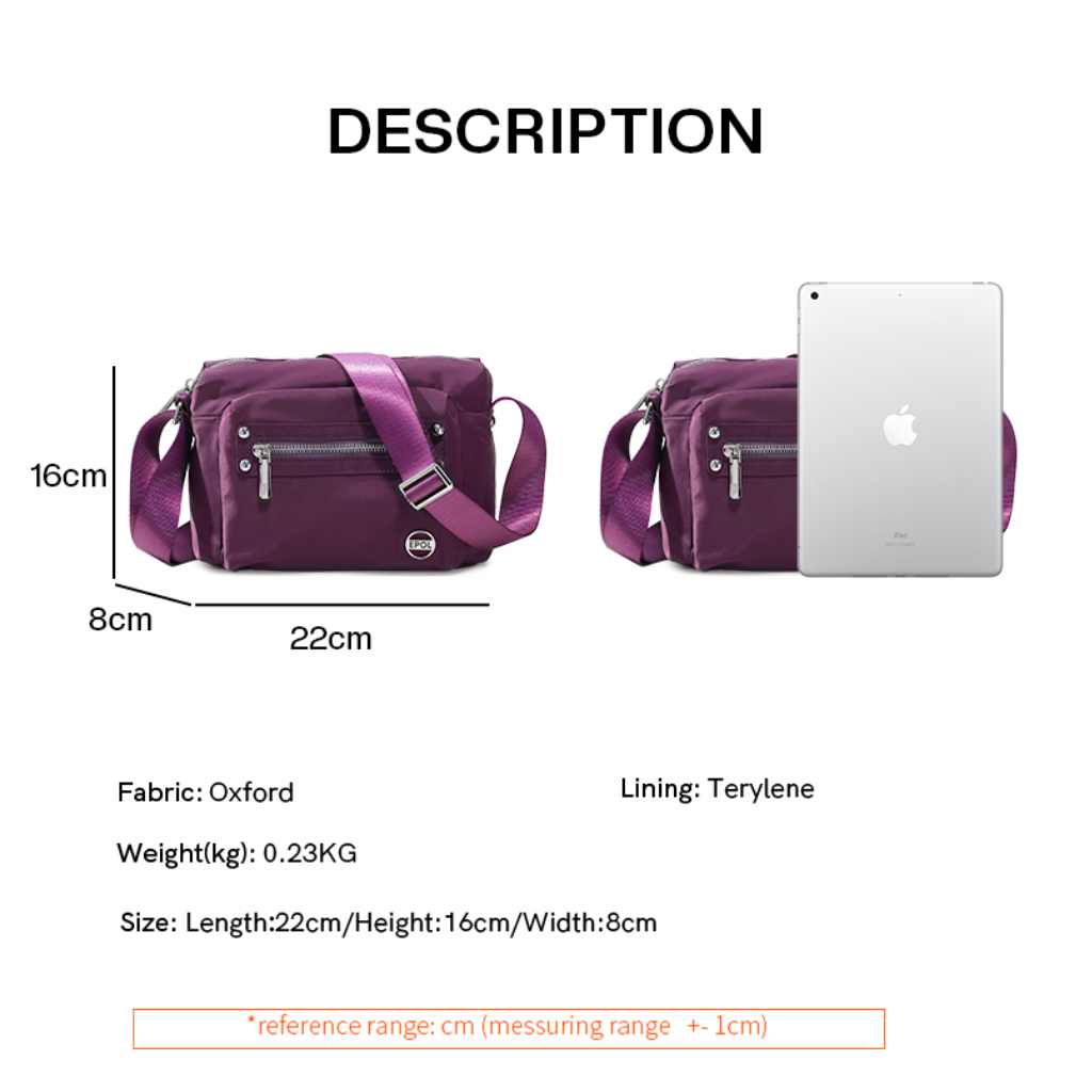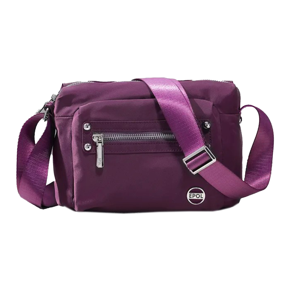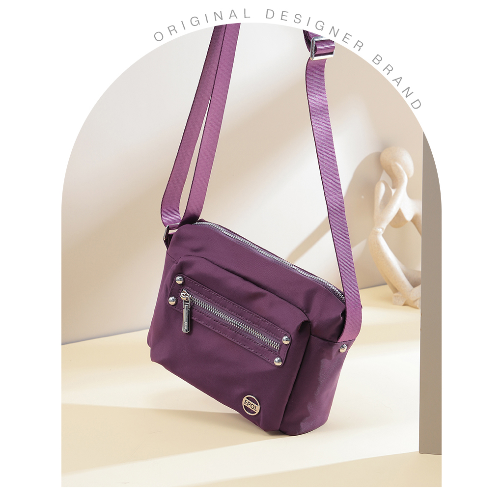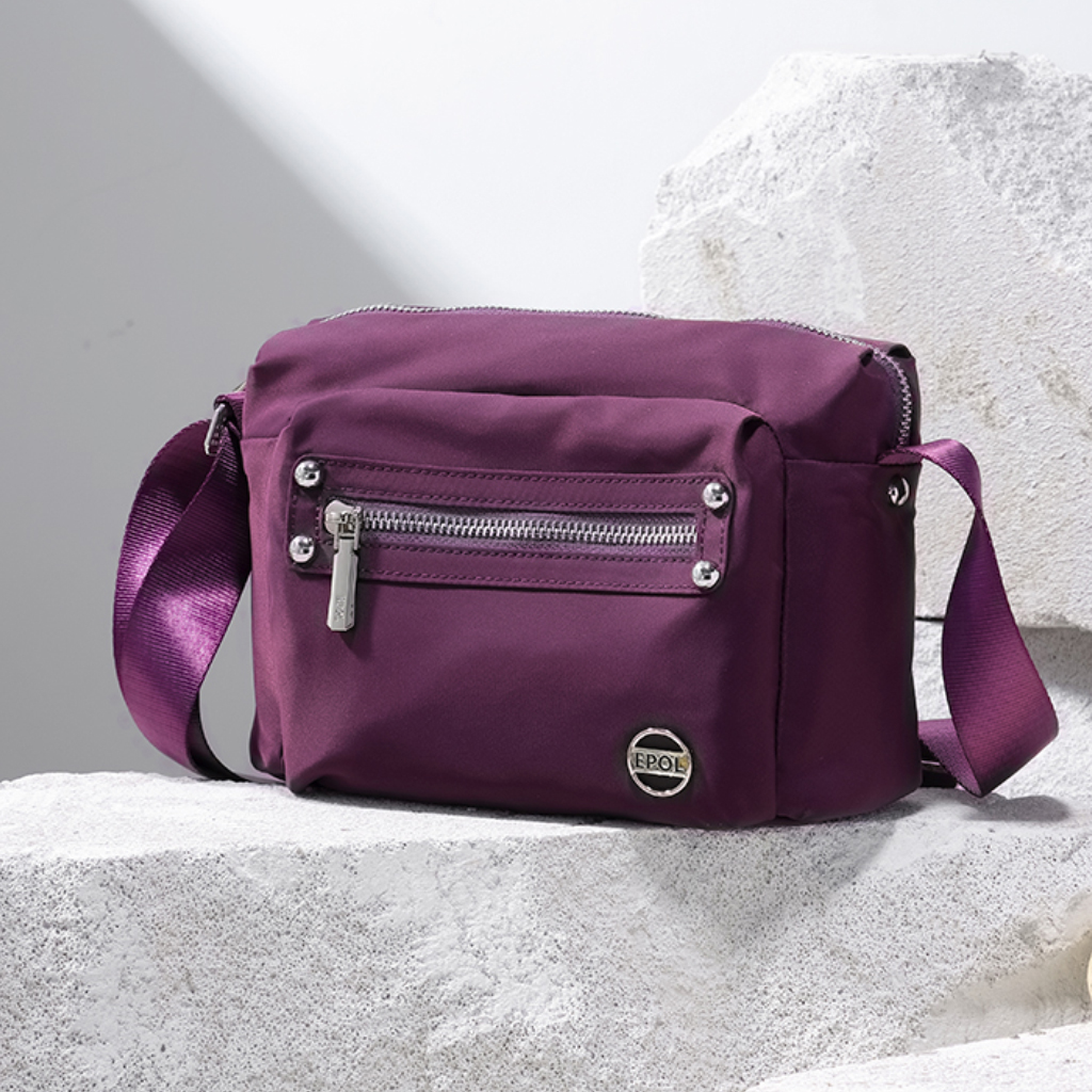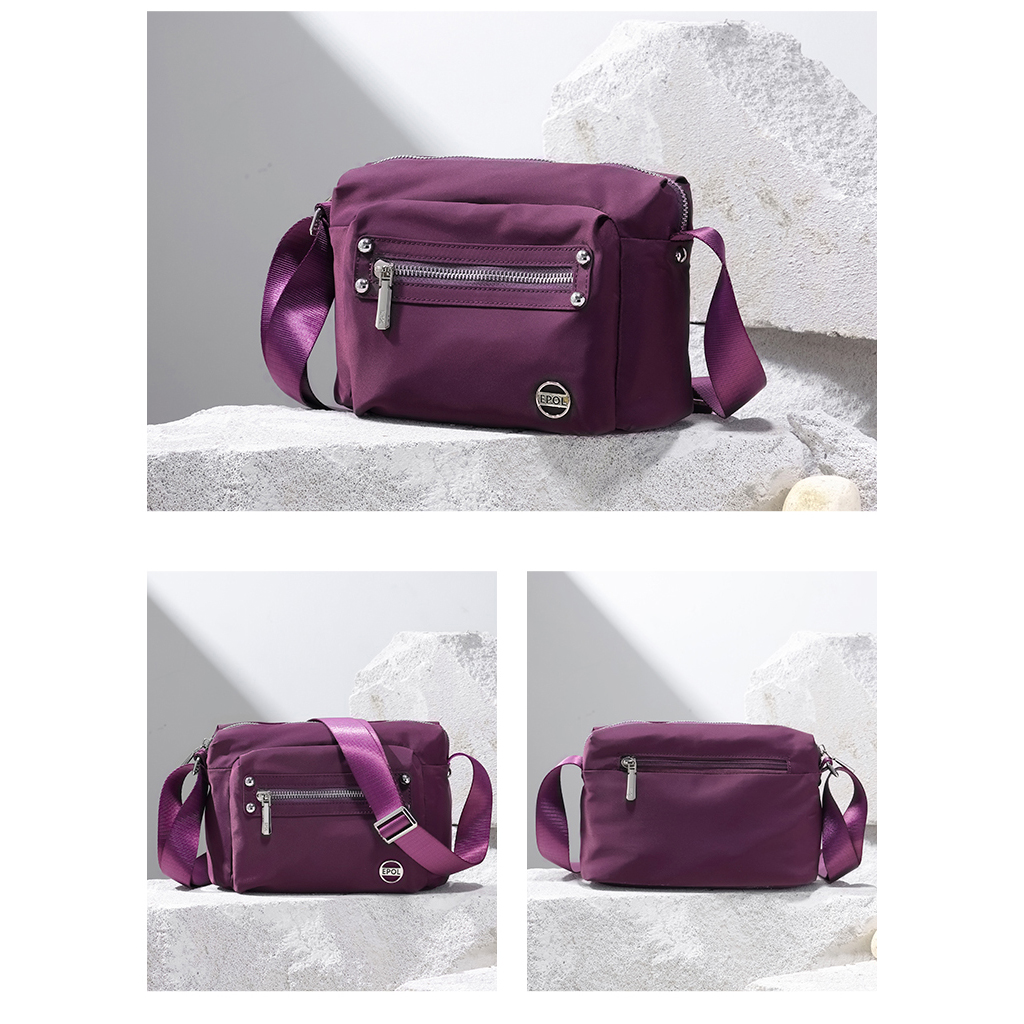 کیف برند ایپول 6088-07 دارای جنس پلی استر ضدآب میباشد که وزن بسیار سبک 230 گرم را دارد که علاوه بر راحتی و کیفیت ، زیبایی منحصر به فردی را داراست. در جلو و عقب کیف یک جیب زیپ دار قرار دارد که فضای مناسبی برای قراردادن لوازم خرده ریز میباشد.در محفظه اصلی کیف در یک طرف محفظه اصلی یک جیب زیپ دار و در طرف دیگر یک جیب ساده قرار دارد. بر روی زیپ و آستر کیف برند Epol درج شده است که نشان دهنده اورجینال بودن کالا میباشد.