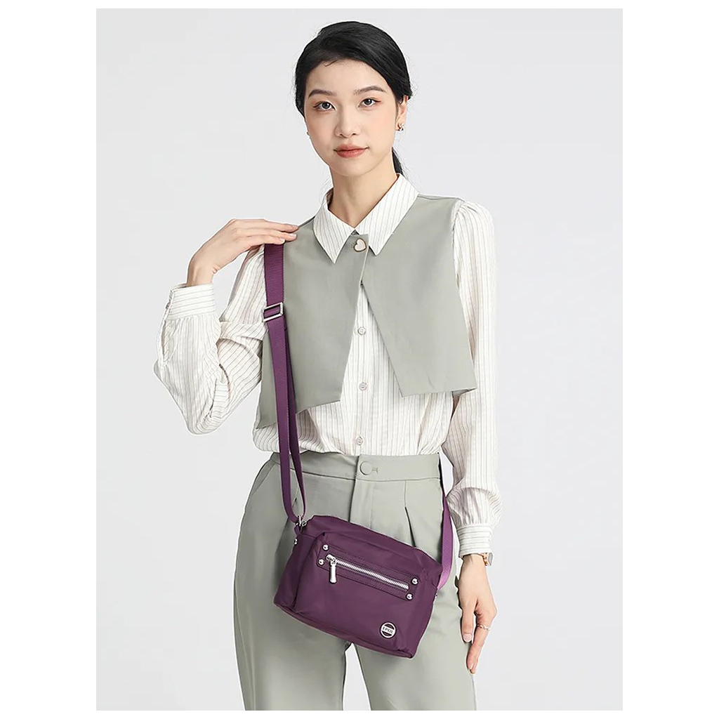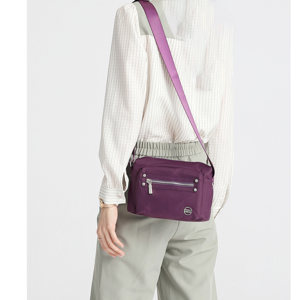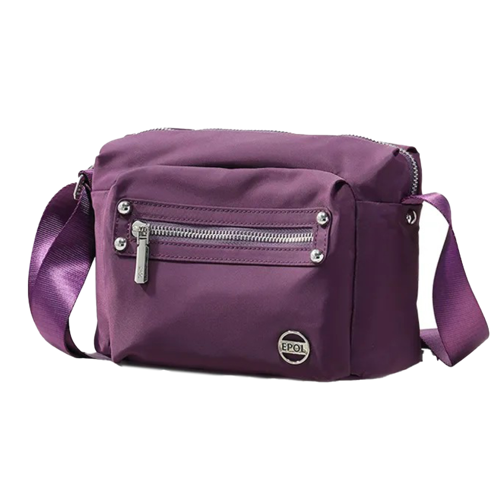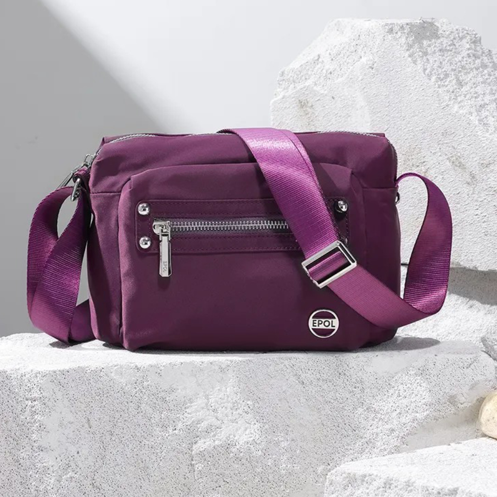 کیف برند ایپول 6088-07 دارای جنس پلی استر ضدآب میباشد که وزن بسیار سبک 230 گرم را دارد که علاوه بر راحتی و کیفیت ، زیبایی منحصر به فردی را داراست. در جلو و عقب کیف یک جیب زیپ دار قرار دارد که فضای مناسبی برای قراردادن لوازم خرده ریز میباشد.در محفظه اصلی کیف در یک طرف محفظه اصلی یک جیب زیپ دار و در طرف دیگر یک جیب ساده قرار دارد. بر روی زیپ و آستر کیف برند Epol درج شده است که نشان دهنده اورجینال بودن کالا میباشد.