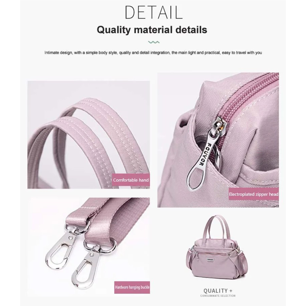 کیف زنانه فوور مدل 2899-01 با داشتن رنگ های خاص و زیبایی منحصر به فرد مختص افراد شیک پوش و خاص پسند میباشد .جنس کیف پلی استر ضد آب و قابل شستشو میباشد که با وزن بسیار سبک 300 گرم راحتی در استفاده را برای شما به ارمغان میاورد . در جلوی کیف 2 جیب زیپ دار و در پشت کیف یک جیب زیپ دار قرار دارد. درون محفظه اصلی کیف در یک طرف یک جیب ساده و در طرف دیگر یک جیب زیپ دار و دو جیب ساده قرار دارد . این مدل به داشتن بند بلند دوشی هم به صورت دستی و هم به صورت رودوشی قابل استفاده میباشد. زیپ و یراق الات آن از کیفیت درجه یک میباشد که بر روی آن برند فوور درج شده است . همچنین بر روی آستر داخلی برند فوور درج شده است که نشان دهنده اورجینال بودن کالا میباشد.