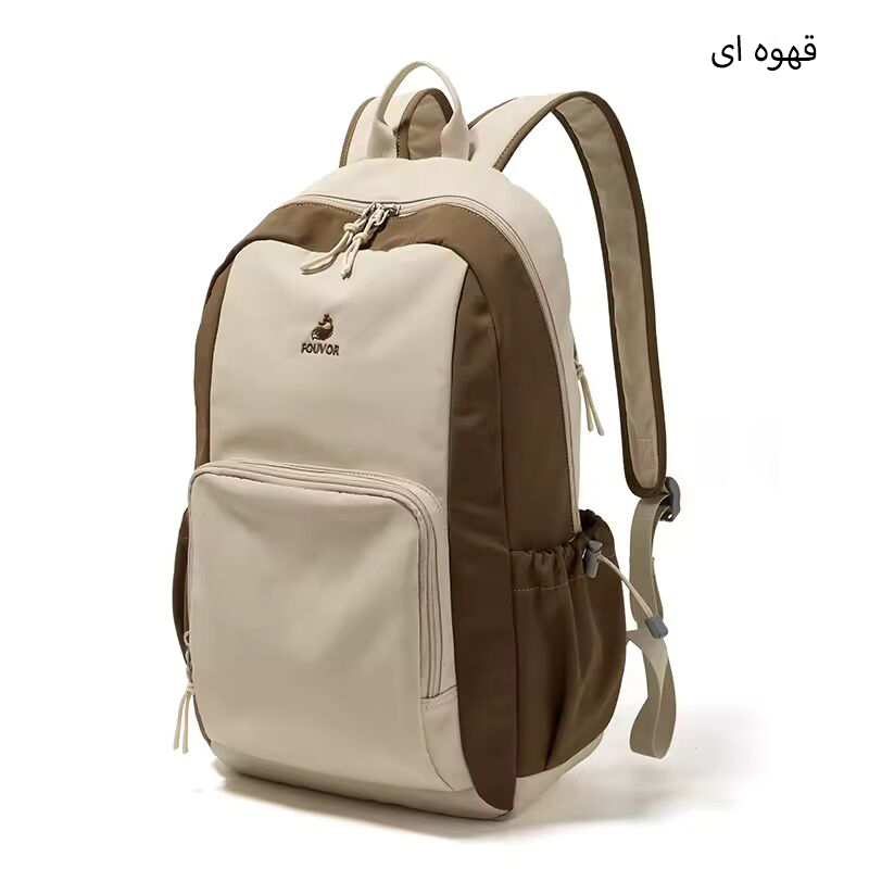 کوله برند فوور مدل 3047-18 دارای طراحی دو رنگ و زیبا مناسب افراد مشکل پسند میباشد . جنس کوله پلی استر ضد آب و قابل شستشو در لباسشویی است که با وزن بسیار سبک راحتی در استفاده را برای شما به ارمغان میاورد . در جلو و پشت کوله یک جیب زیپ دار قرار دارد و پشت کوله دارای بند تراولی برای آویزان کردن به دسته چمدان میباشد . در کناره های کوله دو جیب ساده قرار دارد . درون محفظه اصلی در یک سمت یک محفظه ساده و در سمت دیگر دو جیب ساده و یک جیب زیپی قرار گرفته است . بر روی استر داخلی برند فورر درج گردیده است.