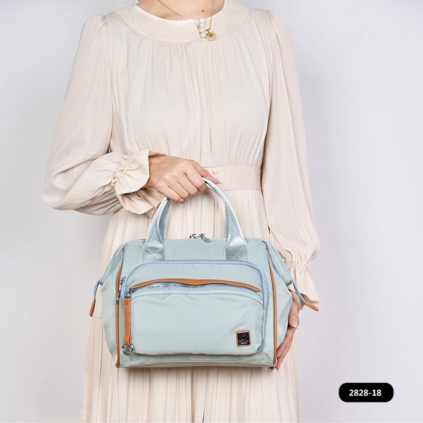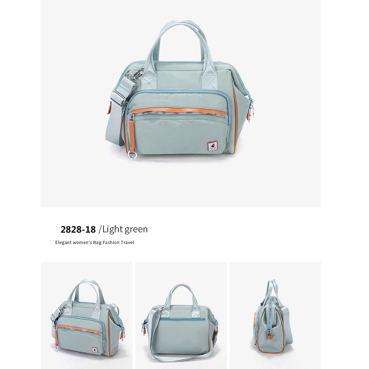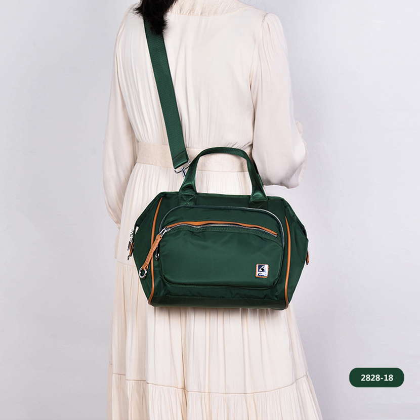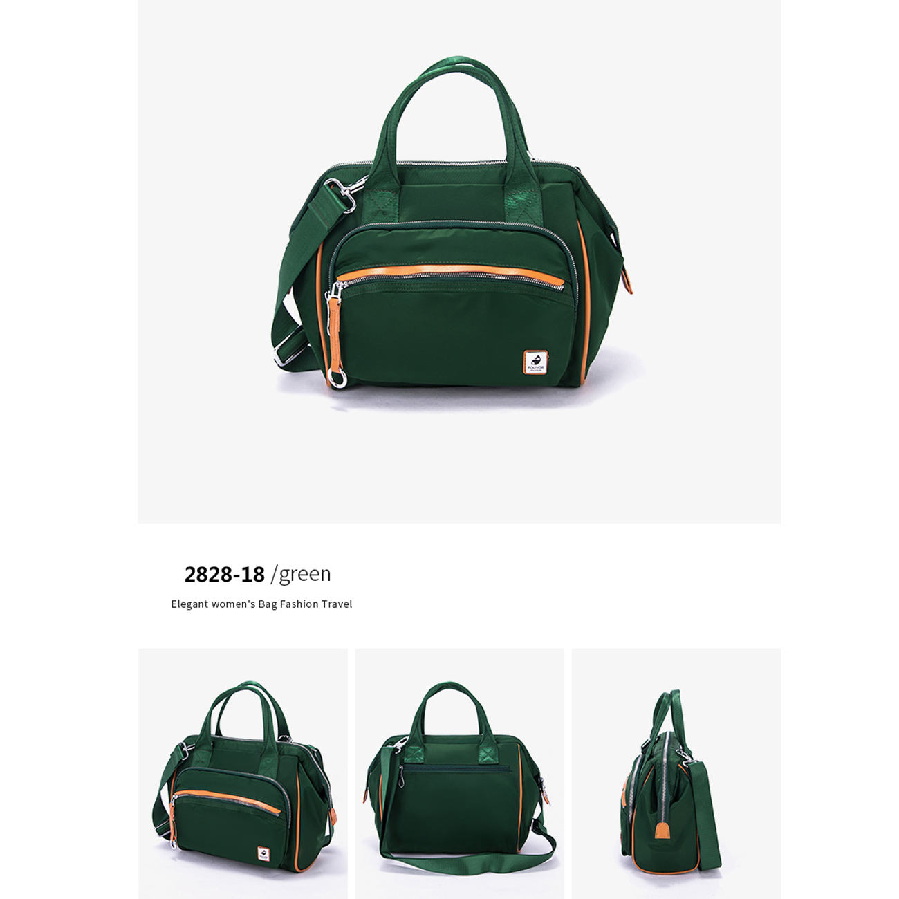 کیف رودوشی فوور مدل cn-2828-18 دارای رنگهای متنوع و منحصر به فرد می باشد. این محصول فوق العاده زیبا مناسب افراد شیک پوش و مشکل پسند هست. از طراحی بسیار زیبای این محصول که بگذریم، زیپ وسط فضای اصلی هست که داخل یک دیواره آن یک فضای زیپ دار و بر روی آن یکی دیواره دو فضای کوچک بدون زیپ می باشد. در قسمت جلوی محصول دو جیب زیپ دار است که فضای خوبی برای لوازم دارد و پشت محصول هم یک فضای زیپ دار وجود دارد.. جنس این محصول از پارچه پلی استر با کیفیت بالا و مقاوم با روکش نایلونی با چگالی بالا ساخته شده است که این محصول را بسیار مقاوم کرده است و ضد آب میباشد. تسمه های بند دوشی از نوار پهن با کیفیت استفاده شده است. آستر داخلی این محصول برند تولید کننده بر روی آن قید شده است. این محصول را هم به صورت کیف دستی و هم با بند دوشی می توان استفاده کرد. زیپ و سرزیپ های زیبا و با کیفیت این کیف از دیگر ویژگی های چشمگیر این محصول می باشد. وزن این محصول فوق العاده سبک 600 گرم می باشد.