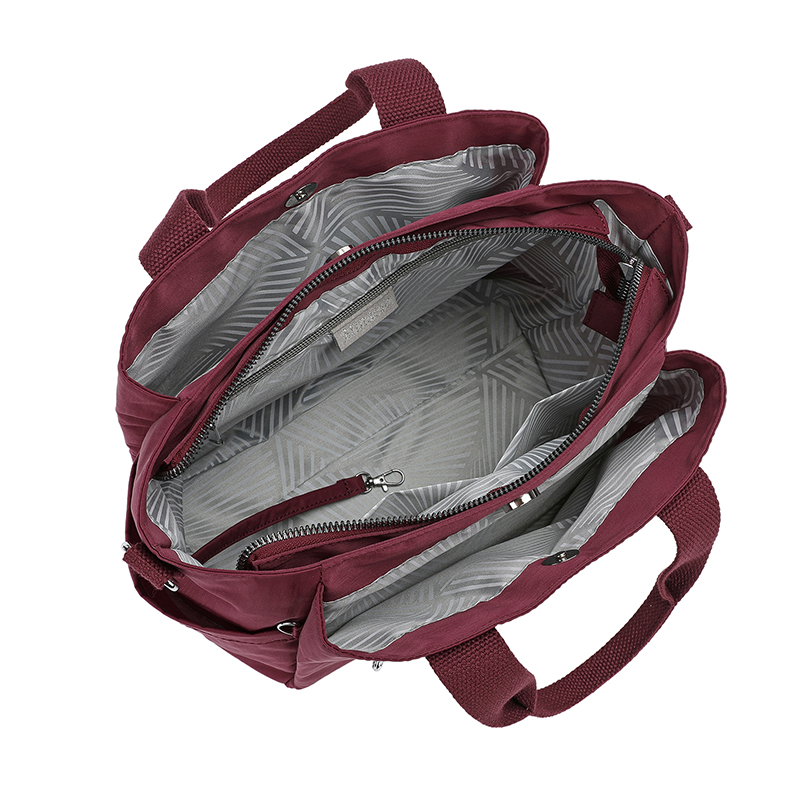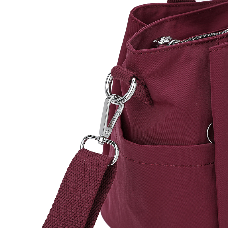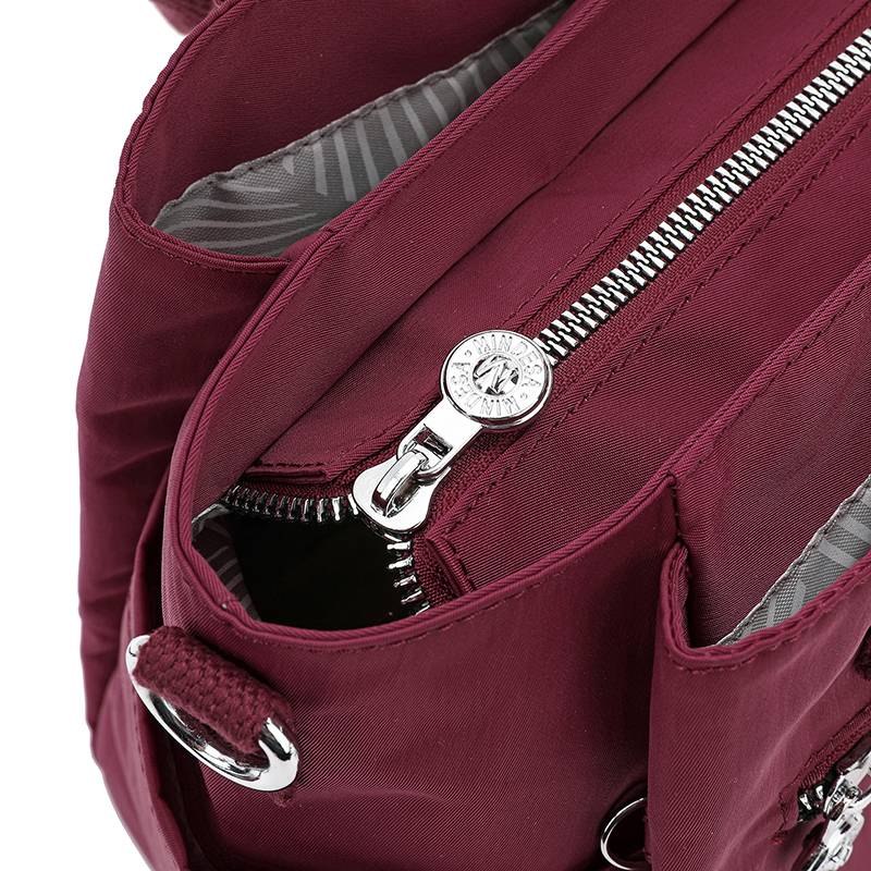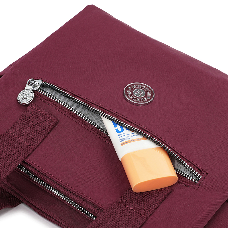 کیف رودوشی زنانه برند میندسا مدل 8726 دارای جنس پلی استر و قابل شستشو در لباسشویی میباشد . این کیف با داشتن سایز متوسط و دارا بودن جیب های متعدد مناسب استفاده روزمره است . در جلو و پشت کیف یک جیب زیپی و در کناره های آن دو جیب ساده قرار گرفته است. درون محفظه اصلی در یک سمت یک جیب زیپی و در سمت دیگر دو جیب ساده وجود دارد . در جلو و پشت محفظه اصلی یک محفظه مگنتی قرار گرفته است . بر روی سر زیپ ها و یراق آلات برند میندسا درج شده است.