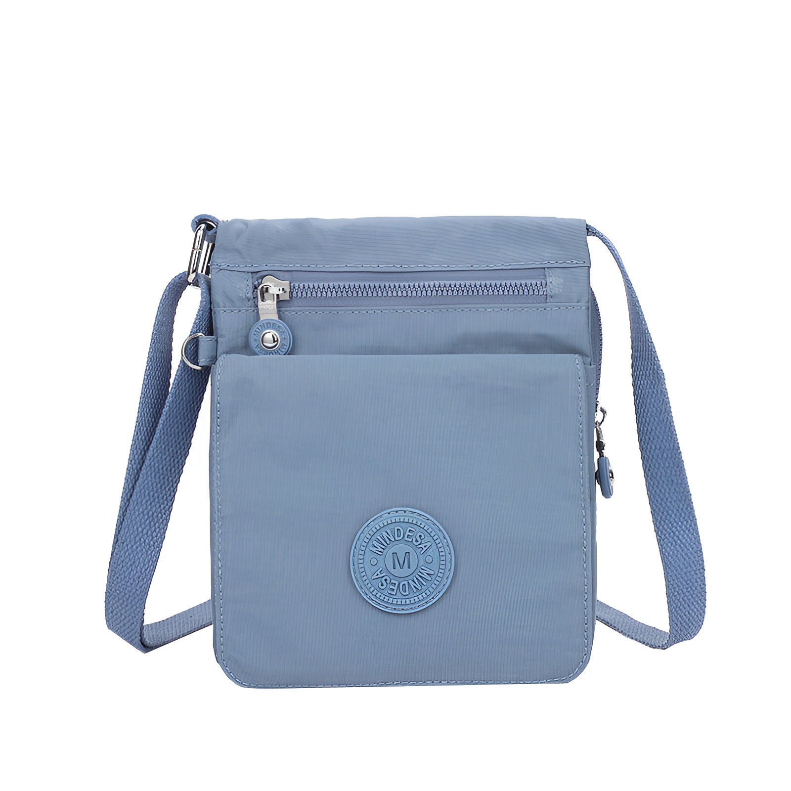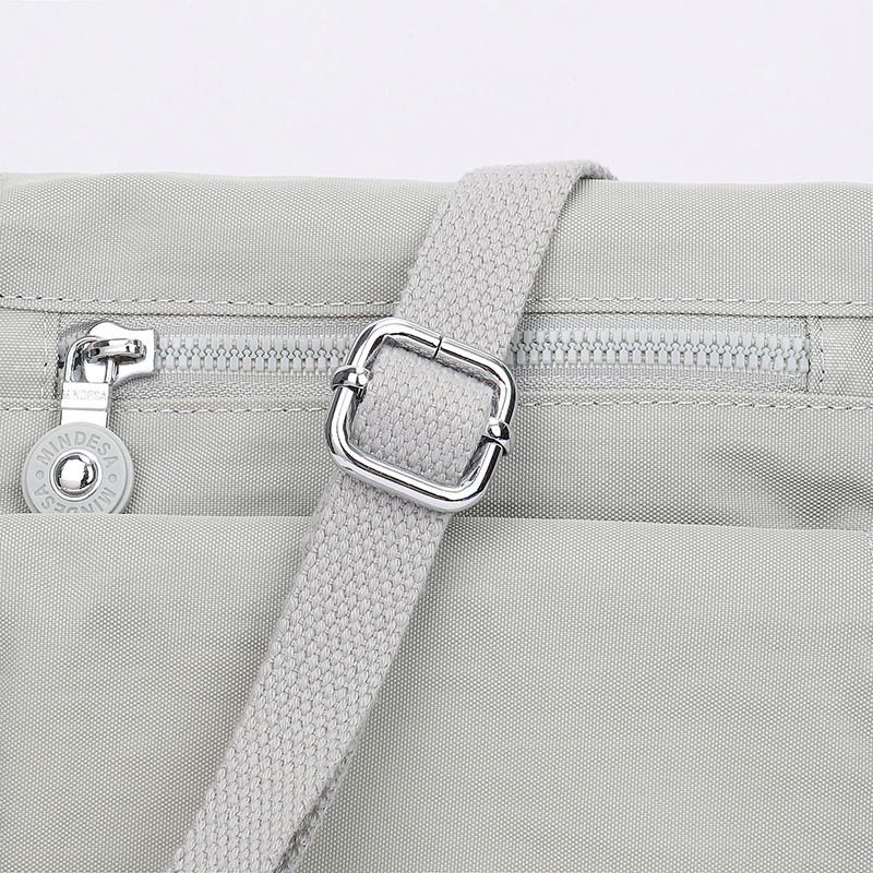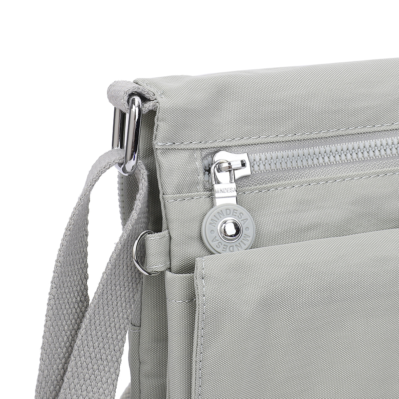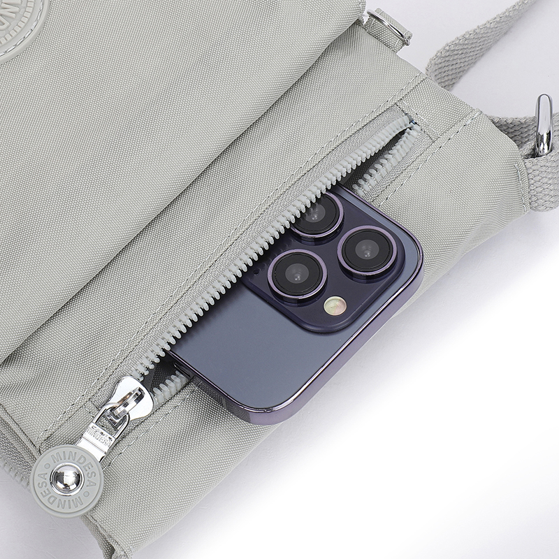 کیف دوشی زنانه میندسا مدل 8737 در واقع یک کیف پاسپورتی مناسب قرار دادن لوازم خرده ریز و موبایل و مدارک میباشد. جنس کیف برزنت کتان هست که ضد آب و قابل شستشو در لباسشویی است.در جلو و پشت کیف یک محفظه زیپی قرار دارد.یک جیب مگنتی در جلو کیف قرار گرفته است که پشت آن دوباره یک جیب مگنتی دیگر است که محفظه آن هم چسبی هست و بخاطر دسترسی دو مرحله ای مناسب قرار دادن اشیا گرانقدر و مدارک میباشد. بر روی یراق آلات و سر زیپ ها برند میندسا درج شده است.