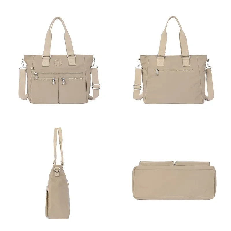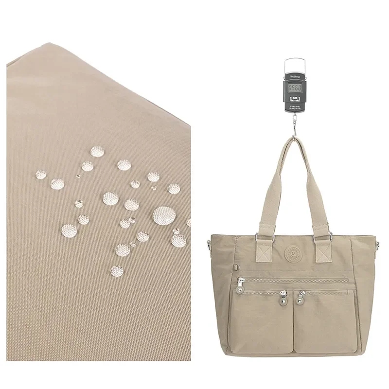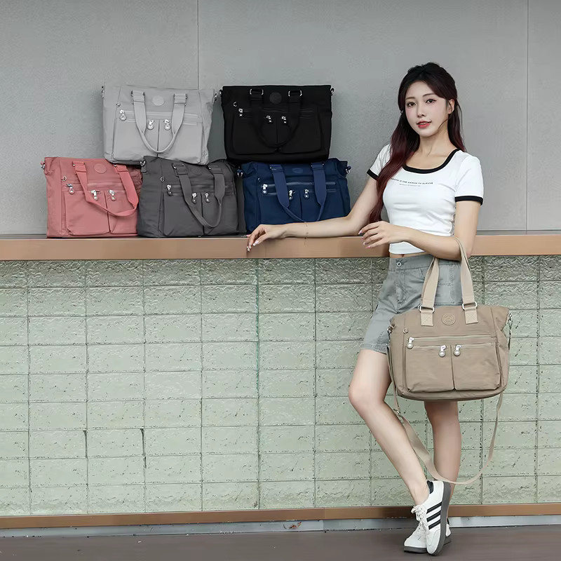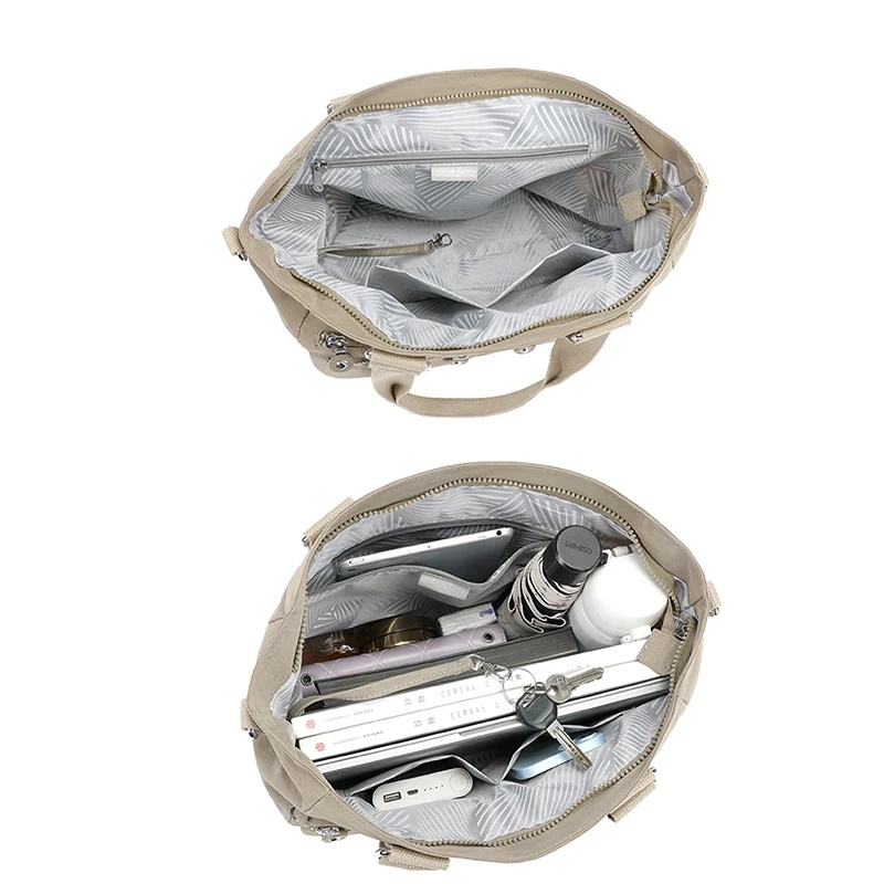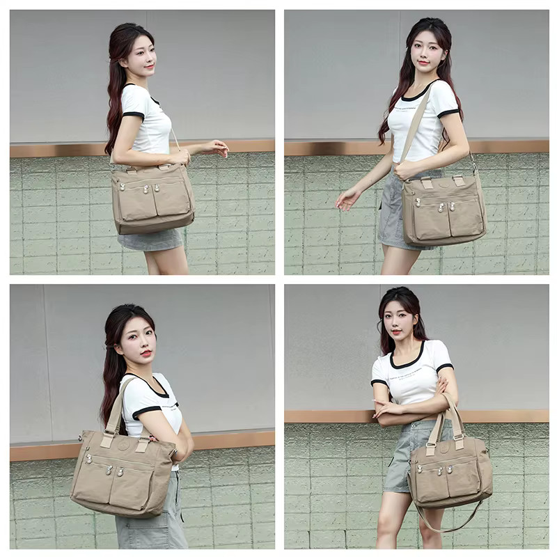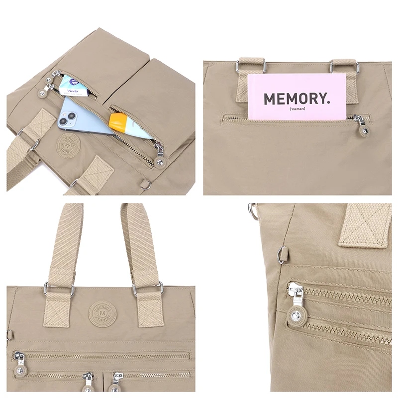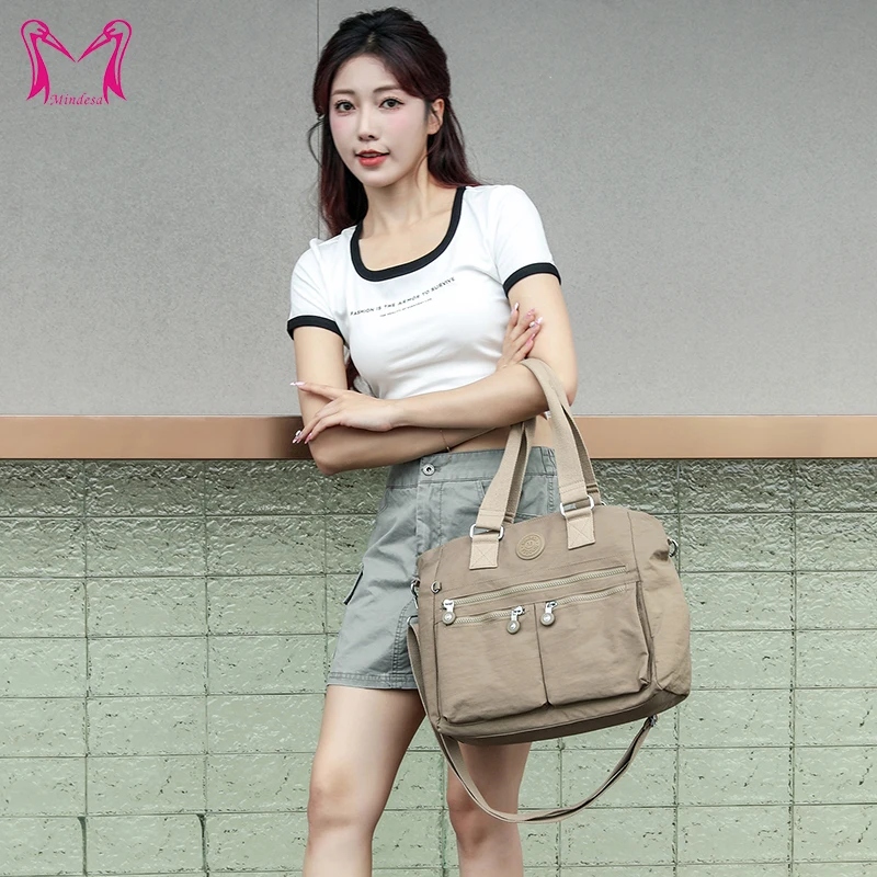کیف برند میندسا مدل 8768 با جنس برزنتی ضد آب و قابل شستشو در لباسشویی و وزن بسیار سبک راحتی در استفاده را برای شما به ارمغان میاورد . در جلوی کیف سه جیب زیپ دار و در پشت کیف یک جیب زیپ دار قرار دارد . درون محظه اصلی در یک سمت یک جیب زیپی و در طرف دیگر دو جیب ساده قرار دارد . این محصول دارای بند بلند دوشی است که میتوانید آن را هم به صورت کیف دستی و هم به صورت دوشی استفاده کنید .بر روی سر زیپ ها برند میندسا درج شده است که نشان دهنده اورجینال بودن کالا میباشد.