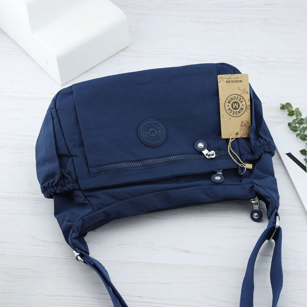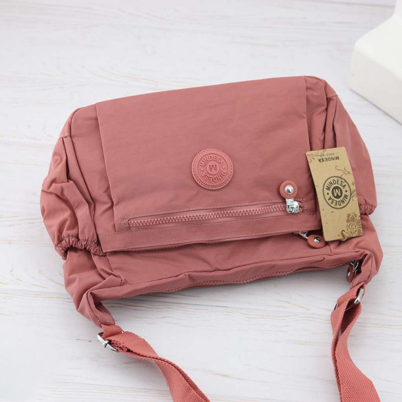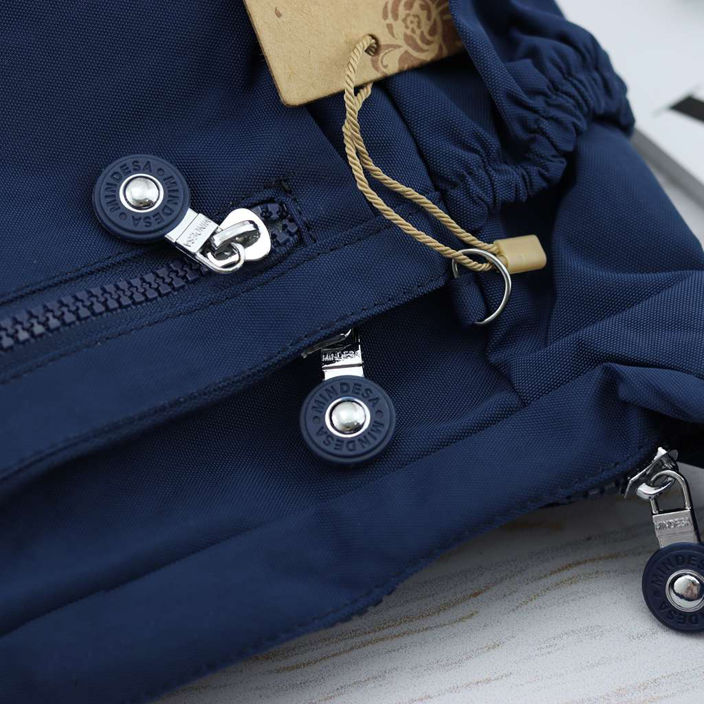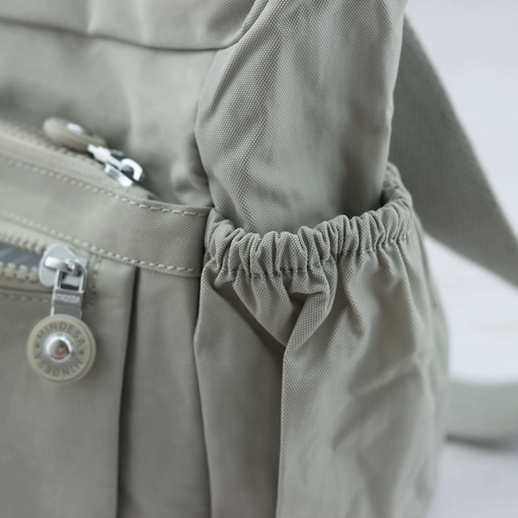 کیف دوشی برند میندسا مدل 8771 دارای جنس برزنتی ضد آب و قابل شستشو در ماشین لباسشویی میباشد . در جلوی کیف دو جیب زیپ دار و در پشت کیف یک جیب زیپ دار قرار دارد . درون محظه اصلی در یک سمت یک جیب زیپی و در طرف دیگر دو جیب ساده قرار دارد . در کناره های کیف دو جیب ساده برای قرار دادن بطری یا قمقمه موجود است. بر روی سر زیپ ها برند میندسا درج شده است که نشان دهنده اورجینال بودن کالا میباشد.
