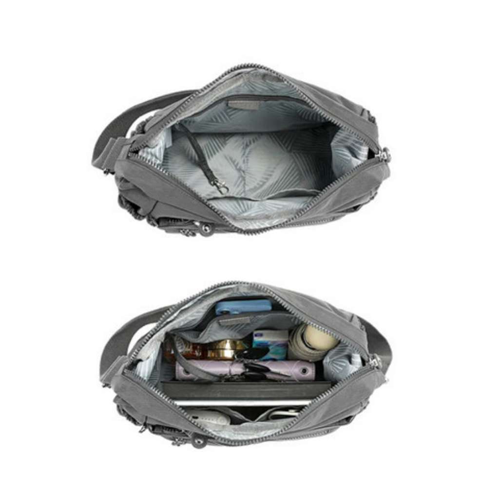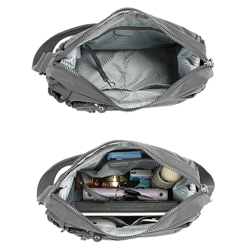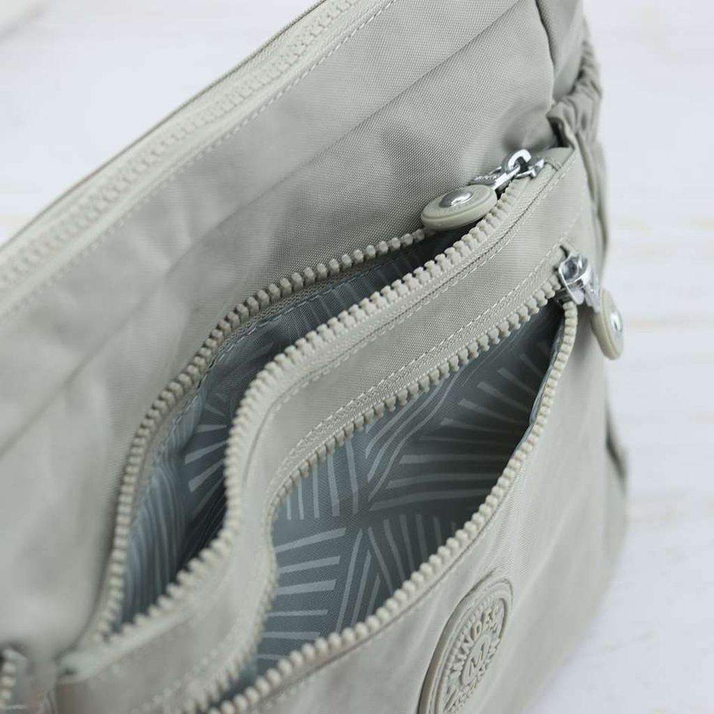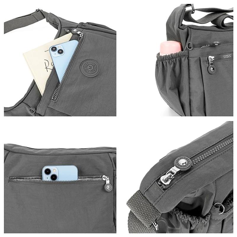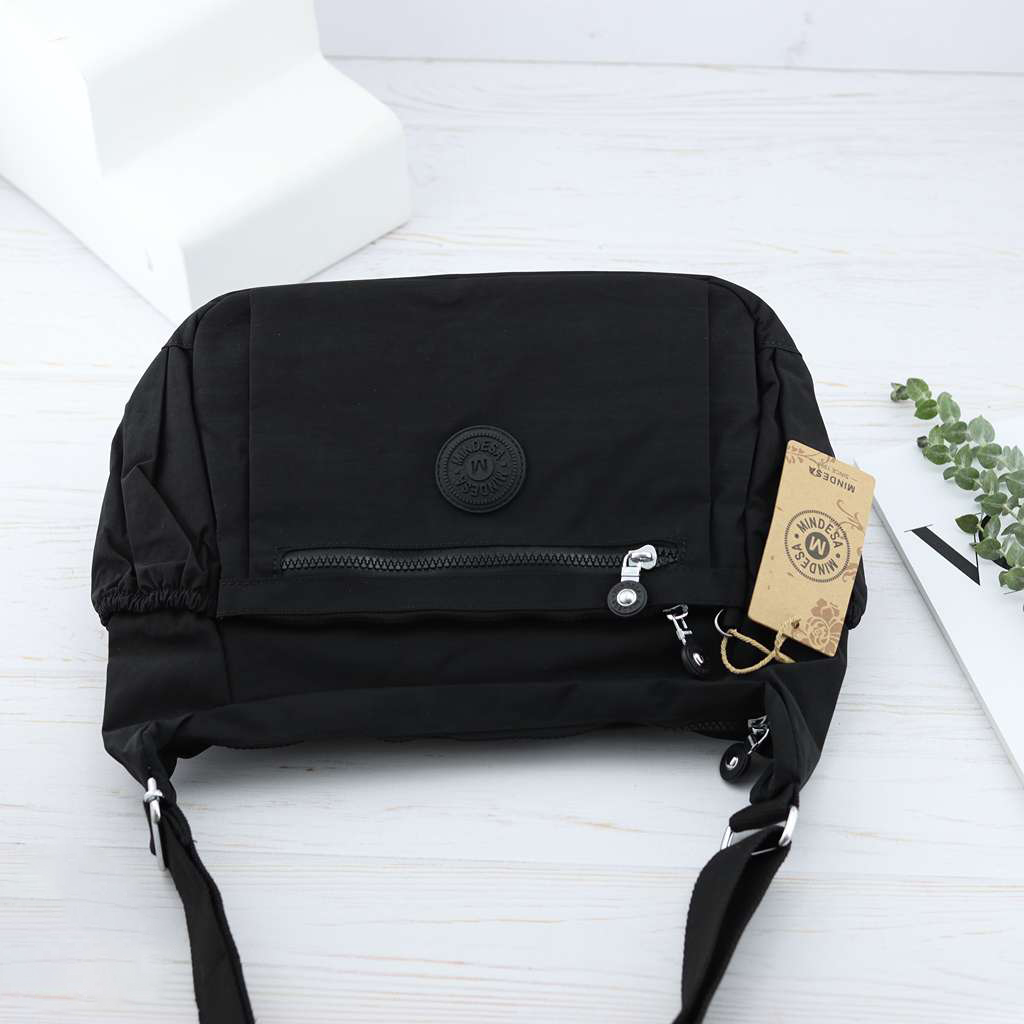 کیف دوشی برند میندسا مدل 8771 دارای جنس برزنتی ضد آب و قابل شستشو در ماشین لباسشویی میباشد . در جلوی کیف دو جیب زیپ دار و در پشت کیف یک جیب زیپ دار قرار دارد . درون محظه اصلی در یک سمت یک جیب زیپی و در طرف دیگر دو جیب ساده قرار دارد . در کناره های کیف دو جیب ساده برای قرار دادن بطری یا قمقمه موجود است. بر روی سر زیپ ها برند میندسا درج شده است که نشان دهنده اورجینال بودن کالا میباشد.