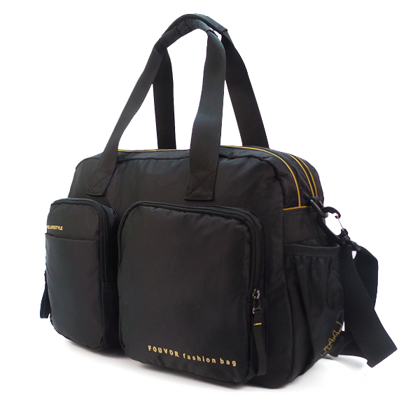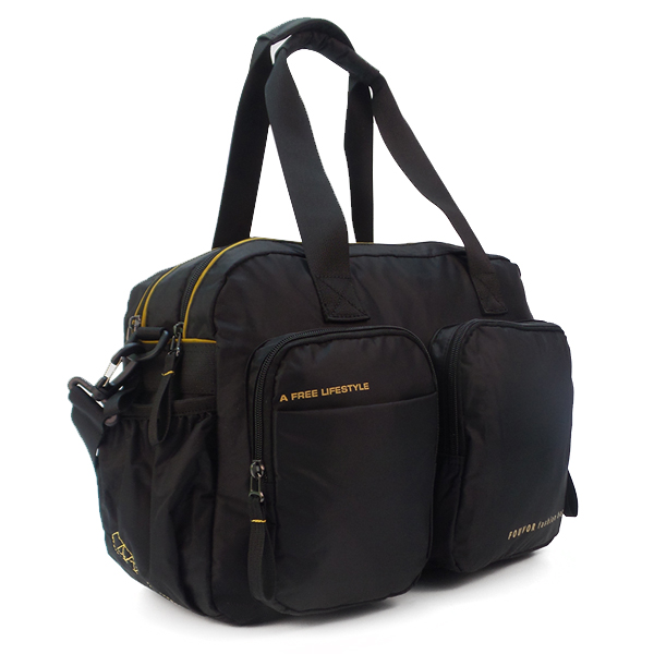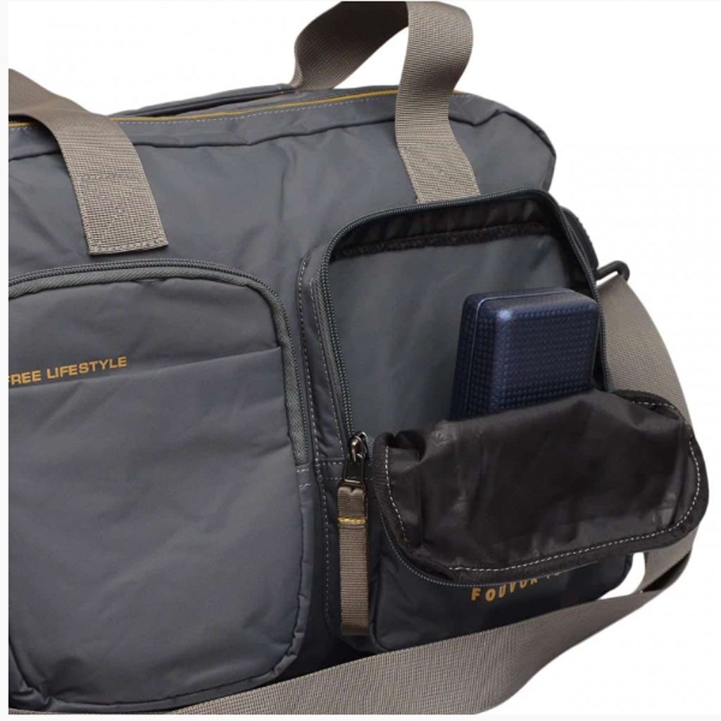 ساک فوور مدل 2538-39 مناسب افراد شیک پوش و مشکل پسند می باشد. طراحی زیبای این محصول به شما این اجازه را میدهد که آنرا به عنوان ساک ورزشی ، سفر و یا ساک دستی استفاده کنید. این محصول دارای دو محفظه اصلی میباشد که فضای زیادی برای لوازم دارد و در آنها یک جیب زیپ دار و دو جیب ساده وجود دارد که جهت سازماندهی لوازم خرده ریز شما می باشد. در کناره های ساک جیب قرار دارد که مناسب برای قمقمه یا بطری آب میباشد. در جلوی ساک دو جیب زیپ دار وجود دارد همچنین در پشت ساک جیب زیپی دارد. جنس این محصول از پارچه پلی استر با کیفیت بالا و مقاوم با روکش نایلونی با چگالی بالا ساخته شده است که این محصول را بسیار مقاوم کرده است که همچنین ضد آب می باشد و در عین حال قابلیت شستشو در ماشین لباسشویی را داراست. تسمه های دسته از نوار با کیفیت استفاده شده است. آستر داخلی این محصول برند فوور بر روی آن قید شده است. این محصول دارای بند بلند میباشد که میتوان آنرا هم به صورت دستی و هم به صورت رودوشی استفاده کرد. زیپ و سرزیپ های زیبا و با کیفیت این ساک از دیگر ویژگی های چشمگیر این محصول می باشد. وزن این محصول فوق العاده سبک 600 گرم می باشد. ابعاد بدنه کیف 40x14x30 میباشد که طول دسته آن 19 سانتی متر است که در مجموع ارتفاع آن 49 سانتی متر میگردد.