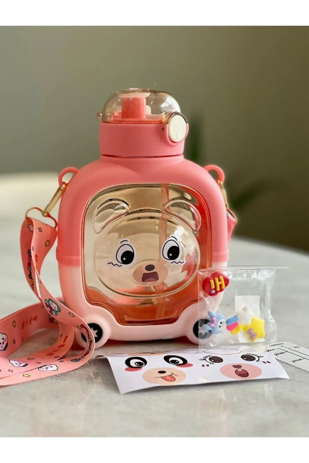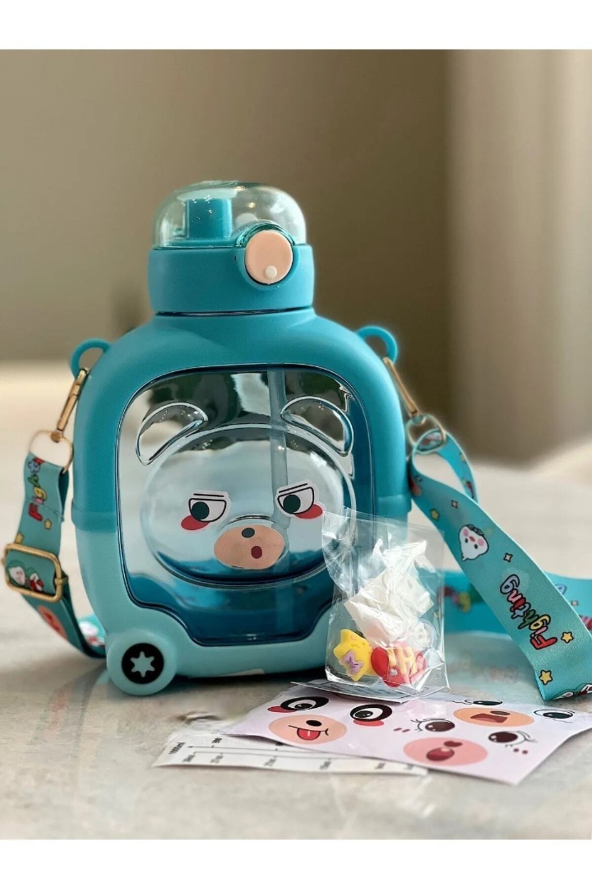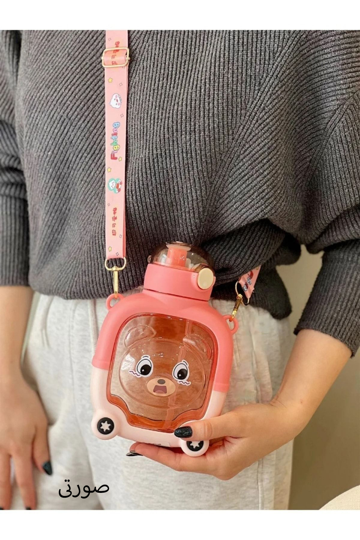 قمقمه بند دار کودک مدل خرس مهربان به همراه استیکر