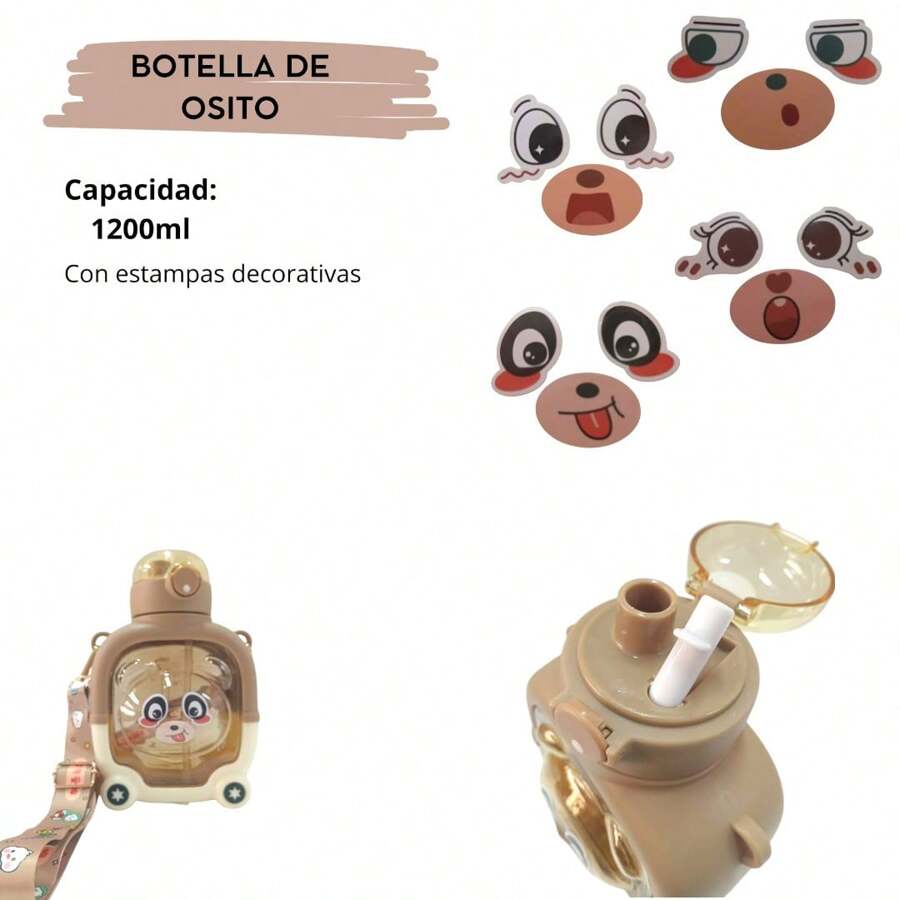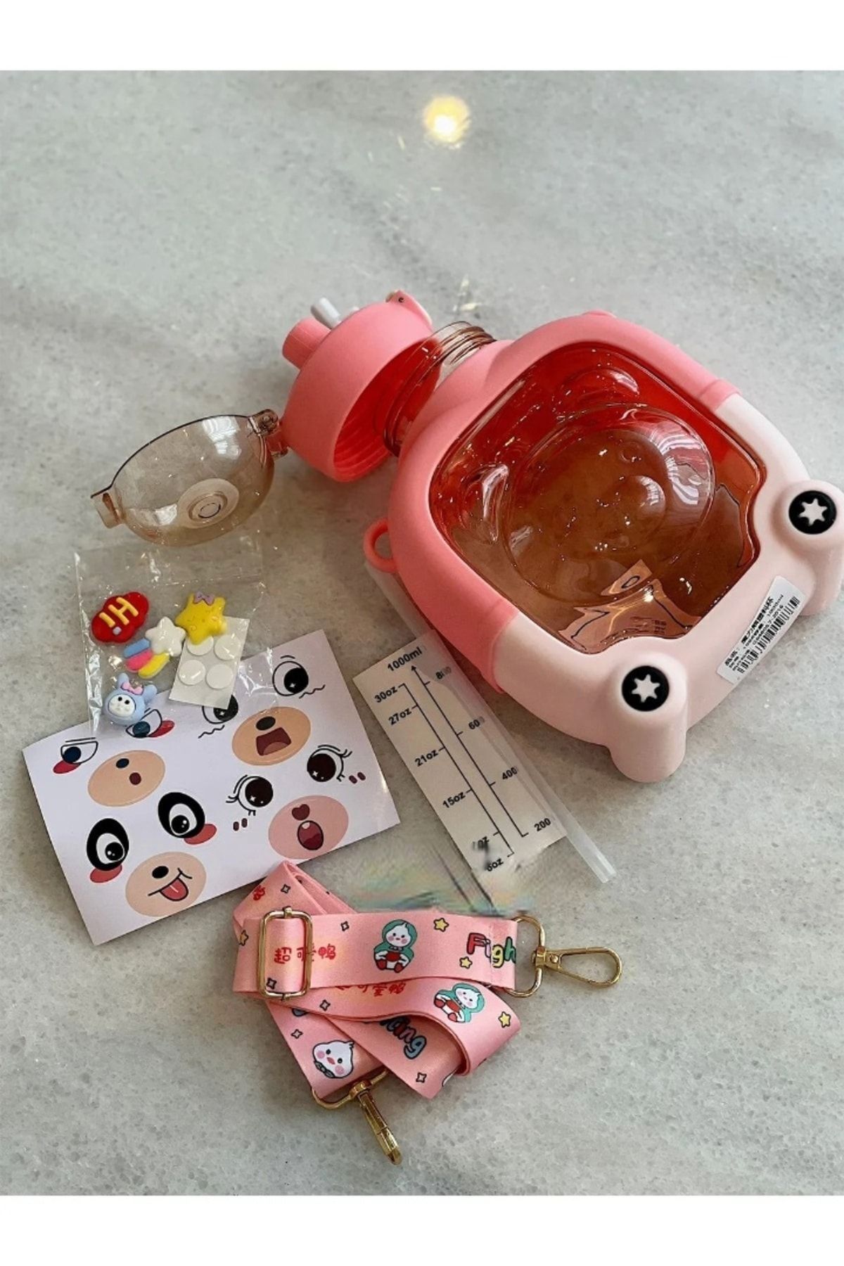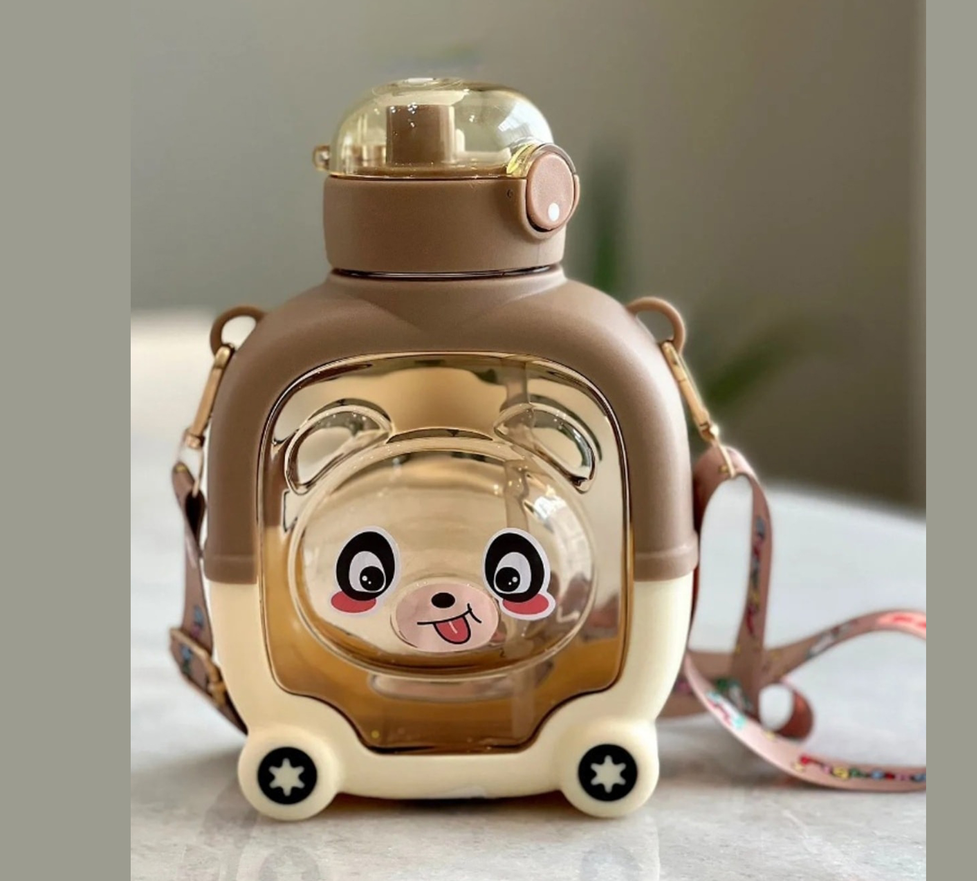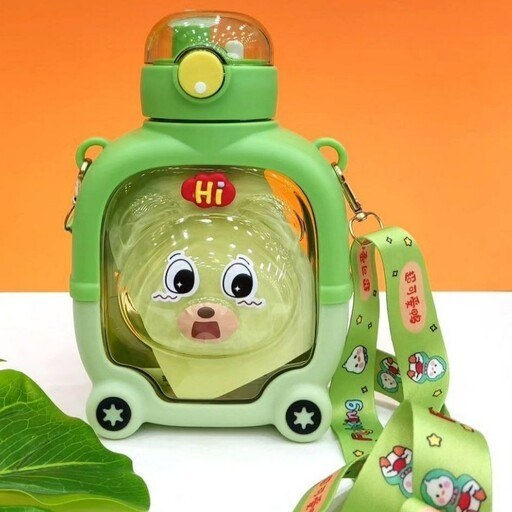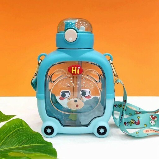 قمقمه بند دار کودک مدل خرس مهربان به همراه استیکر