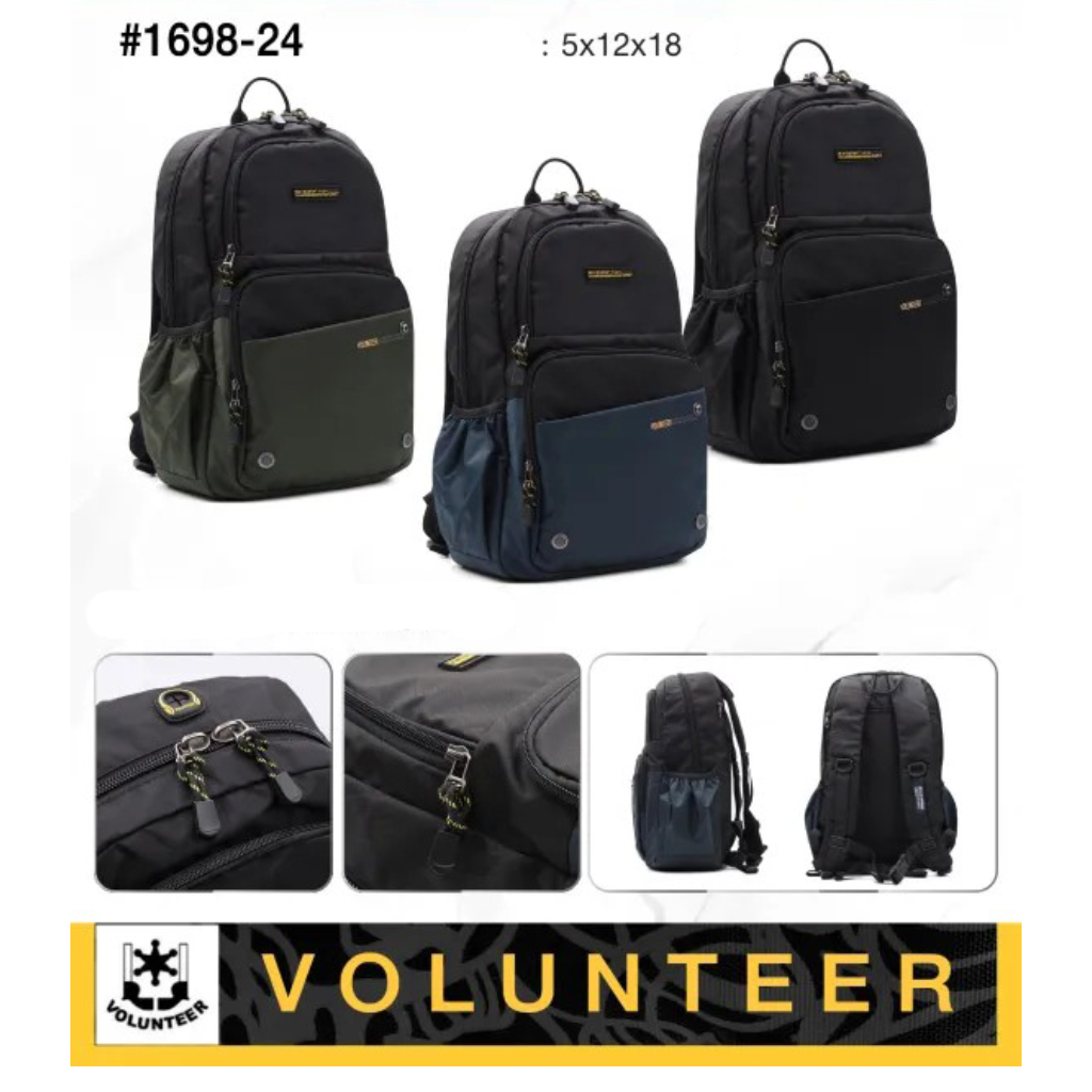 کوله پشتی والنتیر VOLUNTEER مدل 1698-24 ساخته شده از جنس پلی استر، کوله ای بسیار خوش سایز هست که از این محصول هم می توان به عنوان کوله ای برای استفاده روزمره استفاده نمود. در محفظه اصلی آن در یک طرف محفظه و در طرف دیگر آن یک جیب زپپ دار و دو جیب ساده برای قراردادن دفترچه و ... قرار دارد. در جلوی محفظه اصلی یک محفظه زیپ دار قرار دارد و در جلوی آن در خارجی ترین قسمت کوله دو جیب زیپ دار قرار دارد. در قسمت های بغل کوله یک جیب توری برای قرار دادن بطری آب و غیره میباشد.در پشت کوله هم یک زیپ سراسری وجود دارد. قسمت پشت کوله دارای مش (ابر) ضد عرق وجود دارد. بر روی بند کوله هم یک فیکسر قابل تنظیم وجود دارد. زیپ و یراق آلات این محصول بسیار با کیفیت است و سر زیپ های خاص آن به زیبایی کار افزوده است. وزن این محصول بسیار سبک 650 گرم می باشد.